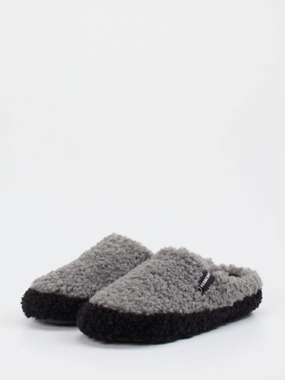 Flauschiges Textil und strukturierte Gummisohle vereinen sich bei diesen Verbenas-Pantoffeln zu stilvollem Wohlfühlkomfort für daheim.
