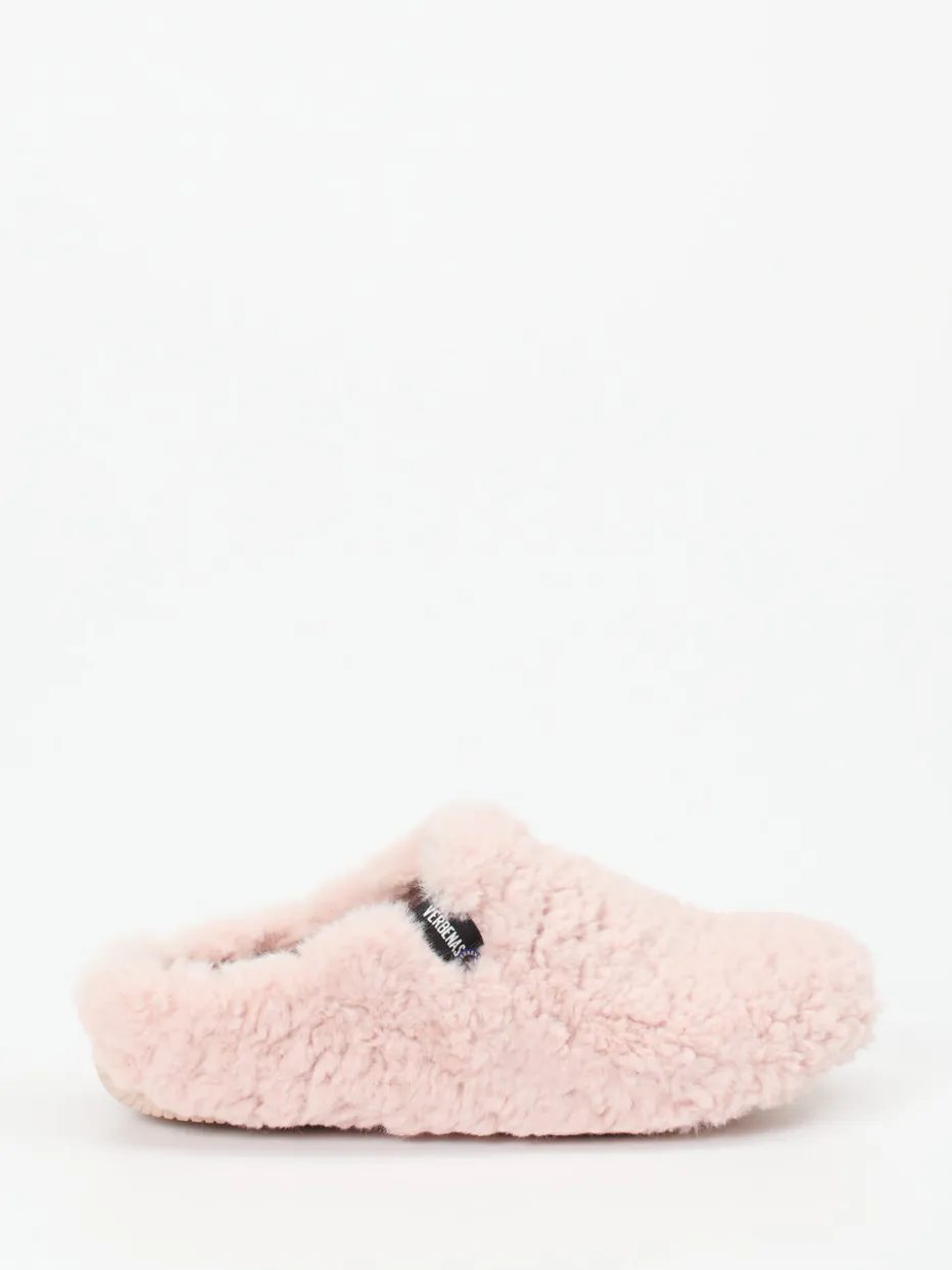 Wohlfühlmomente in jeder Jahreszeit.Die Marke Verbenas präsentiert mit diesen Pantoffeln ein stilvolles Highlight der Loungewear-Kultur. Ideal für kalte Tage und gemütliche Abende: Das samtweich strukturierte Textil in blassrosa Farbgebung umschließt den Fuß sanft, während das Microfaserfutter für ein angenehmes Tragegefühl sorgt. Die geschlossene Form mit offener Ferse erlaubt einfaches Hineinschlüpfen, das rutschhemmende Sohlenprofil aus Gummi bietet sicheren Halt auf glatten Böden. Minimalistische Elemente wie das seitliche Markenlabel unterstreichen einen zurückhaltend modernen Look. Optimal zu Leggings oder einem Homewear-Set. Ein Komfortstatement mit klarer Formsprache – typisch Verbenas.