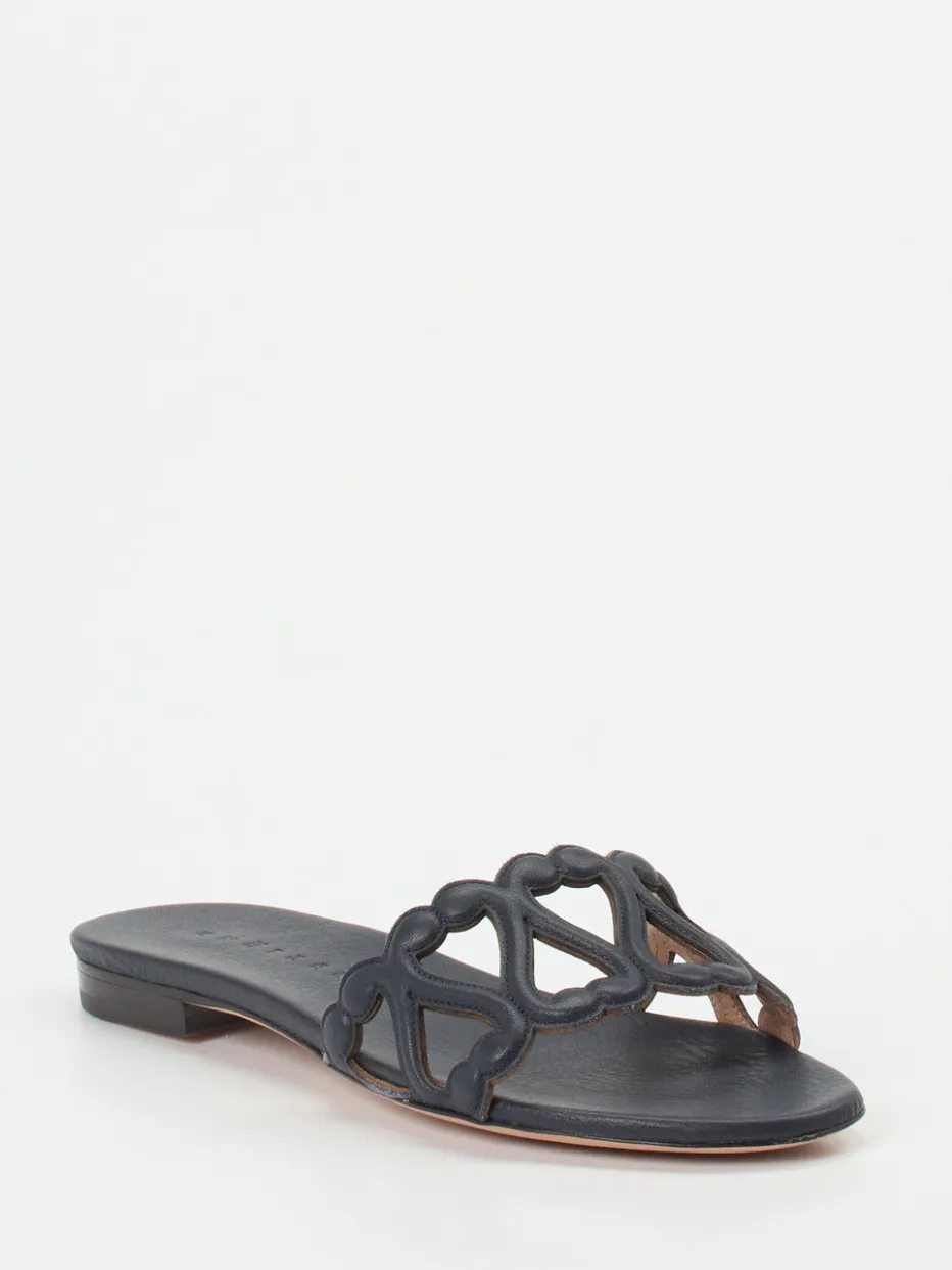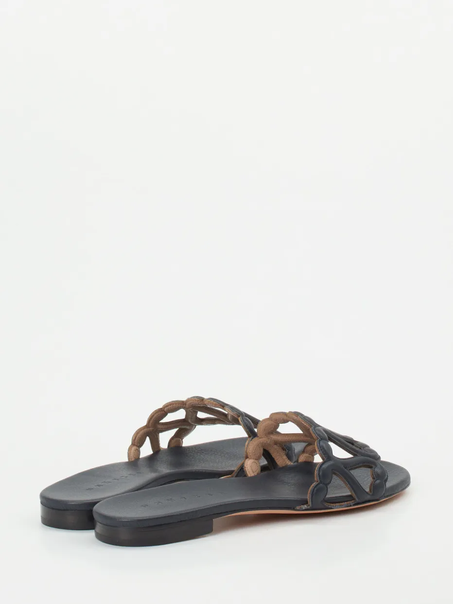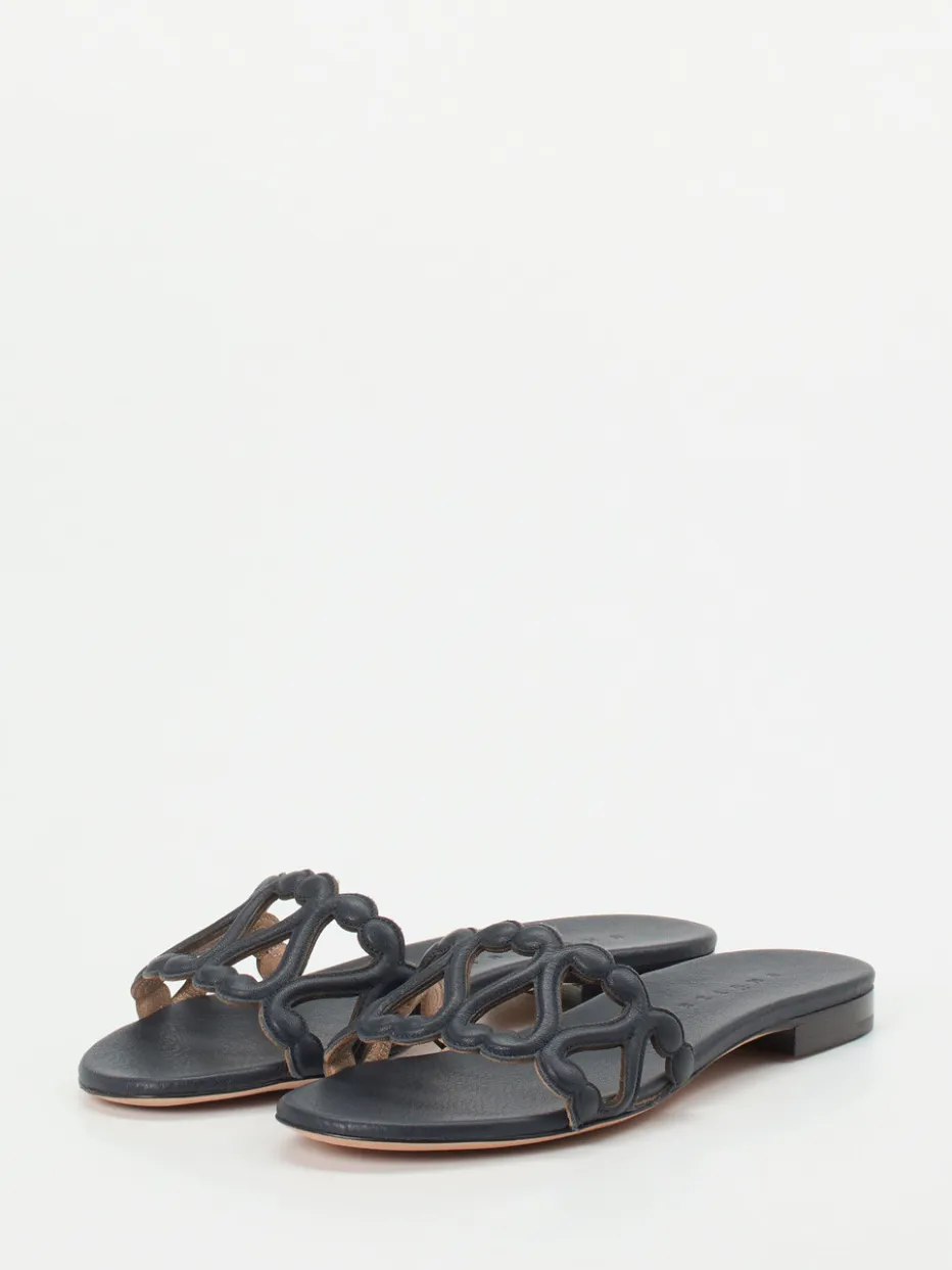 Diese fein gearbeitete Lederslide vereint mediterrane Leichtigkeit mit minimalistischer Raffinesse – ideal für anspruchsvolle Sommerlooks.