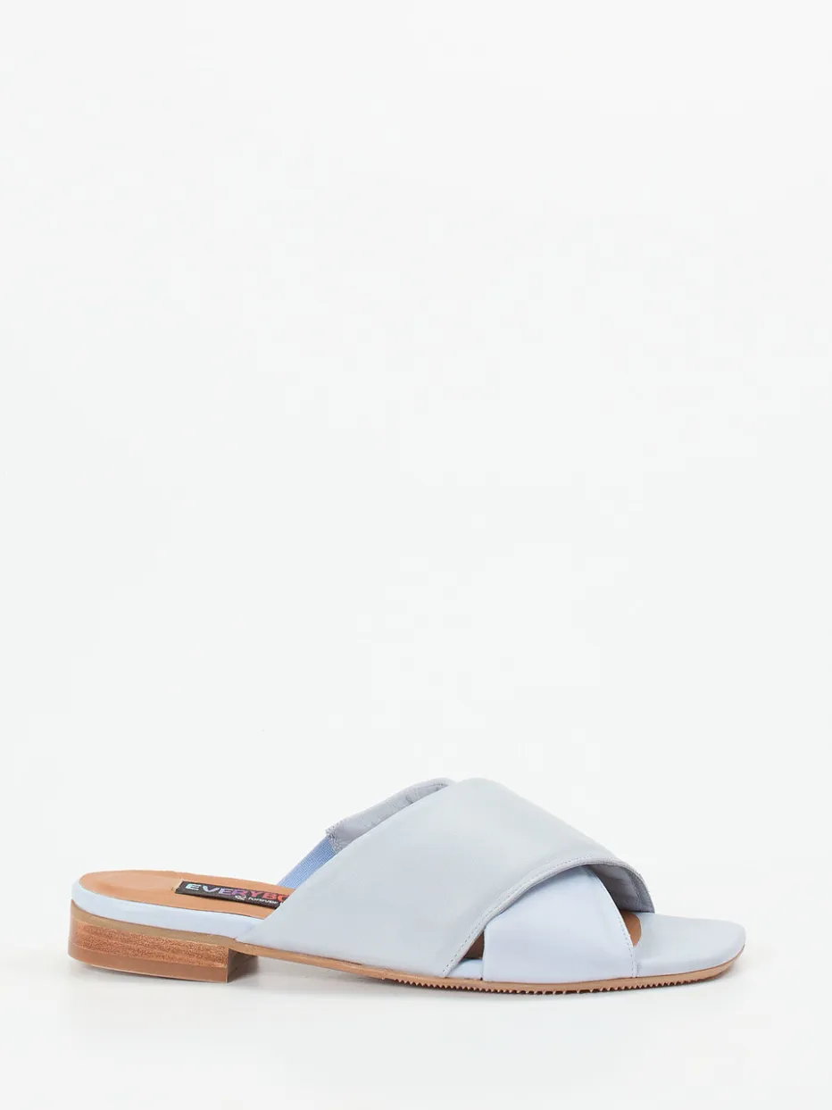 Leichtigkeit trifft zurückhaltende Eleganz.Die Damen-Pantolette von Everybody überzeugt als sommerlicher Begleiter mit minimalistischem Charme. Ob im Urlaub oder im Alltag – das pastellblaue Lammleder mit matter Oberfläche wirkt dank breiter, wattierter Kreuzriemen besonders feminin und sorgt zugleich für Komfort. Der flache Absatz in dezenter Holzoptik vervollständigt das luftige Design, während das gepolsterte Innenfutter ein angenehmes Tragegefühl garantiert. Elemente wie Ton-in-Ton-Nähte und eine strukturierte Profilsohle betonen die cleanen Linien und den raffiniert reduzierten Stil. Kombiniert mit hellen Leinenstoffen entsteht ein sommerlicher Look im Geist des „Quiet Luxury“. Hochwertige Materialien und zeitgemäßes Understatement kennzeichnen die Qualität von Everybody.