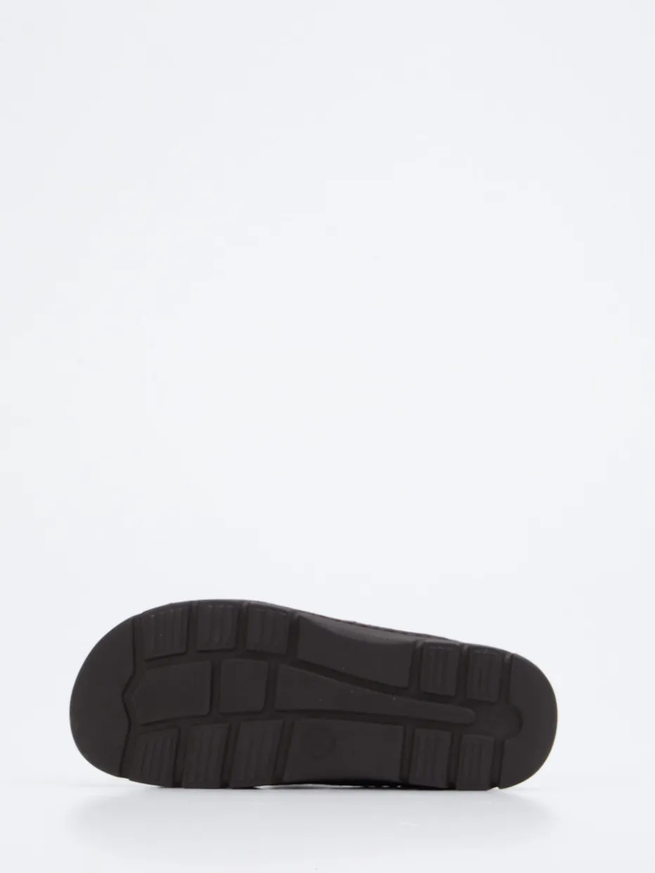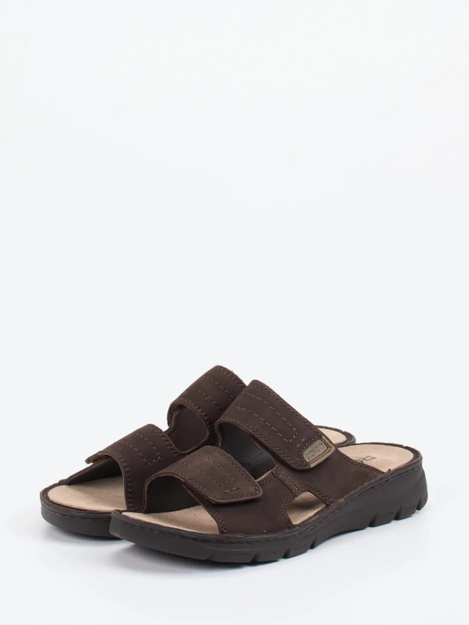 Komfort neu definiert.Rohde präsentiert eine Herren-Pantolette, die mit kompromisslosem Komfort überzeugt. Ob für entspannte Tage daheim oder warme Sommertage auf der Terrasse – das dunkelbraune Modell aus samtig angeschliffenem Nubukleder bietet dank weicher Polsterung und ergonomischer Form spürbare Entlastung. Zwei verstellbare Klettverschlüsse sorgen für eine individuell anpassbare Passform, während die profilierte Gummisohle rutschhemmende Sicherheit gewährleistet. Dezente Kontrastnähte und das geprägte Markenlabel geben dem klaren Design charaktervolle Akzente. Optimal für komfortaffine Männer mit Sinn für funktional-klassische Looks. Authentischer Tragegenuss und langlebige Qualität in markentypischer Verarbeitung.