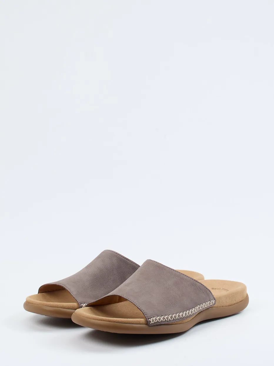 Weiches Nubukleder, eine ergonomische Form und dezente Details machen diese Gabor-Pantolette zum überzeugenden Begleiter für entspannte Sommertage.