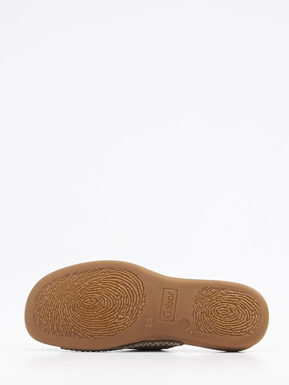 Diese Pantolette der Marke Gabor überzeugt durch ihr sportlich lässiges Erscheinungsbild. Auf der breiten Bandage kommt das gewaschene, taupefarbene Nubukleder angenehm zur Geltung. Sommerliche akzentuieren die cremefarbenen Kreuzstichnähte. Die gute Passform der Pantolette wird durch den unauffälligen Elasteinsatz an der Innenseite unterstützt. Von innen weich gepolstert, vermittelt die flexible, honigfarbene Gummisohle Alltagstauglichkeit und eine Extraportion Bequemlichkeit.