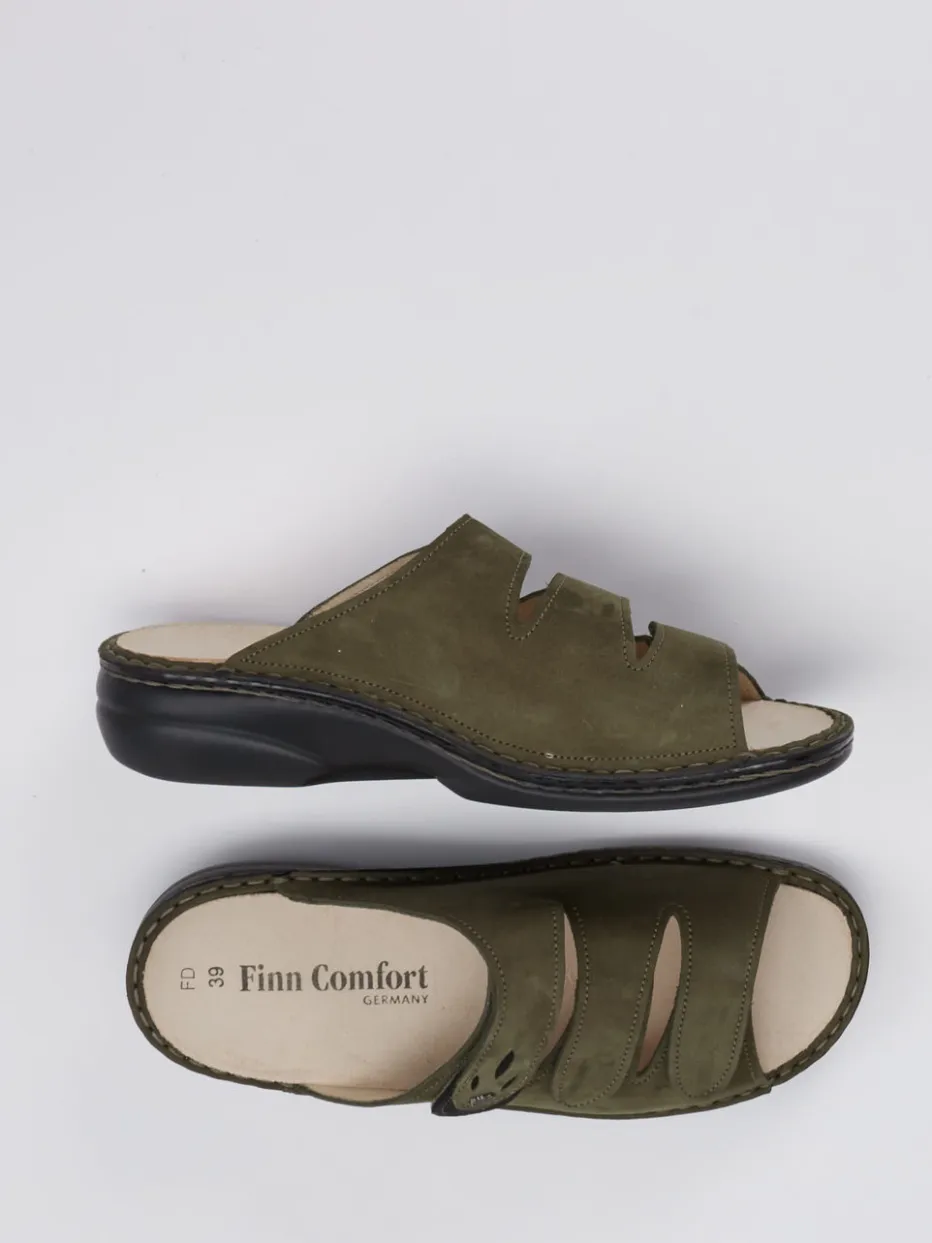 Finn Comfort präsentiert mit dieser Pantolette einen funktional durchdachten Komfortschuh für Damen.