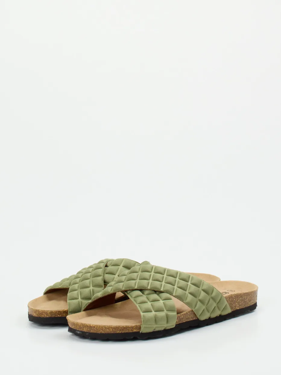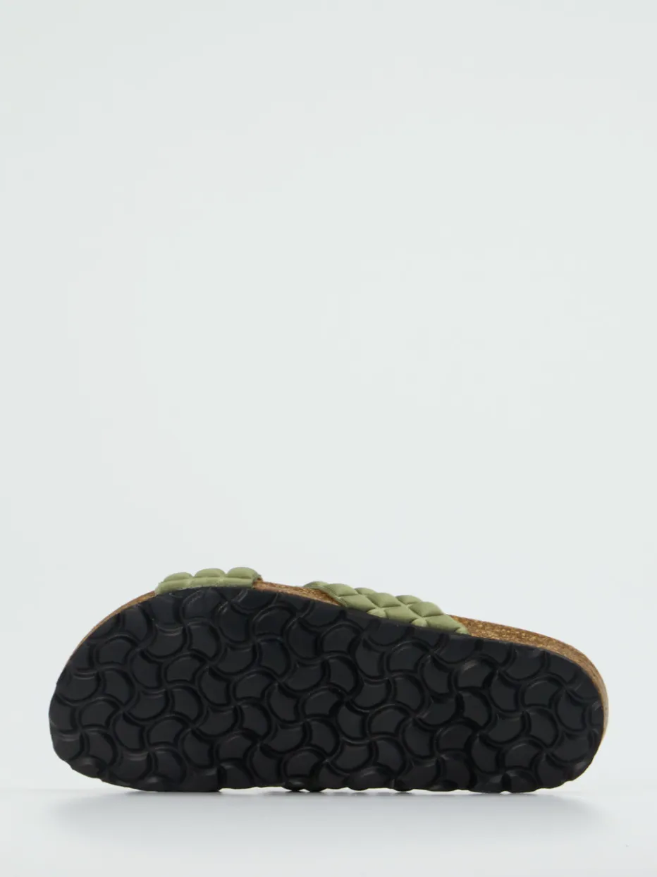 Mit weich gepolsterten Kreuzriemen in trendigem Salbeigrün verbindet die Thies-Pantolette minimalistisches Design mit sommerlicher Leichtigkeit.