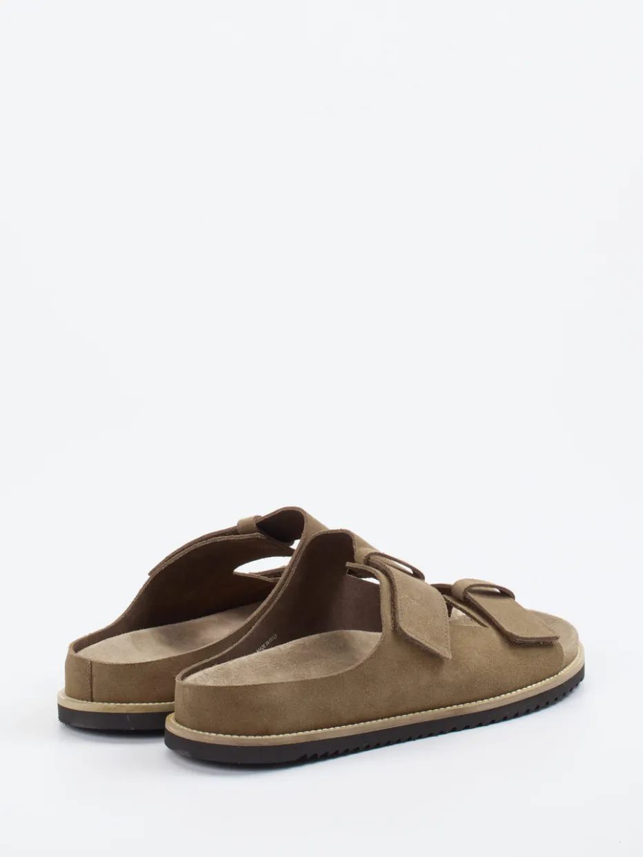 Ralph Harrison präsentiert eine moderne Variante klassischer Zwei-Riemen-Pantoletten. Die flache Herren-Sandale passt ideal zu urbanen Alltagsmomenten oder entspannten Urlaubsstunden.
