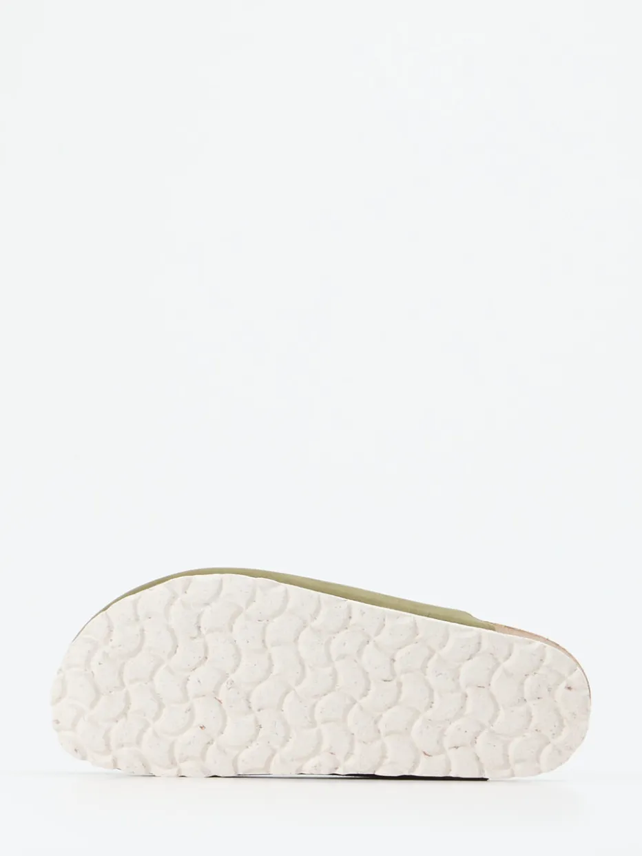Mit ihrem ergonomischen Kork-Fußbett und dem samtig-matt strukturierten Veloursleder in Olivgrün bietet sie ein rundum angenehmes Tragegefühl. Das geschlossene Vorderblatt und die offene Ferse unterstreichen die klassische Silhouette, während gesticktes Seitenlogo und gesprenkelte Gummisohle dezente Akzente setzen. Die weiche Textilfütterung steigert den Wohlfühlfaktor zusätzlich. Ideal für nachhaltigkeitsbewusste Trägerinnen im „Nature Core“-Stil.