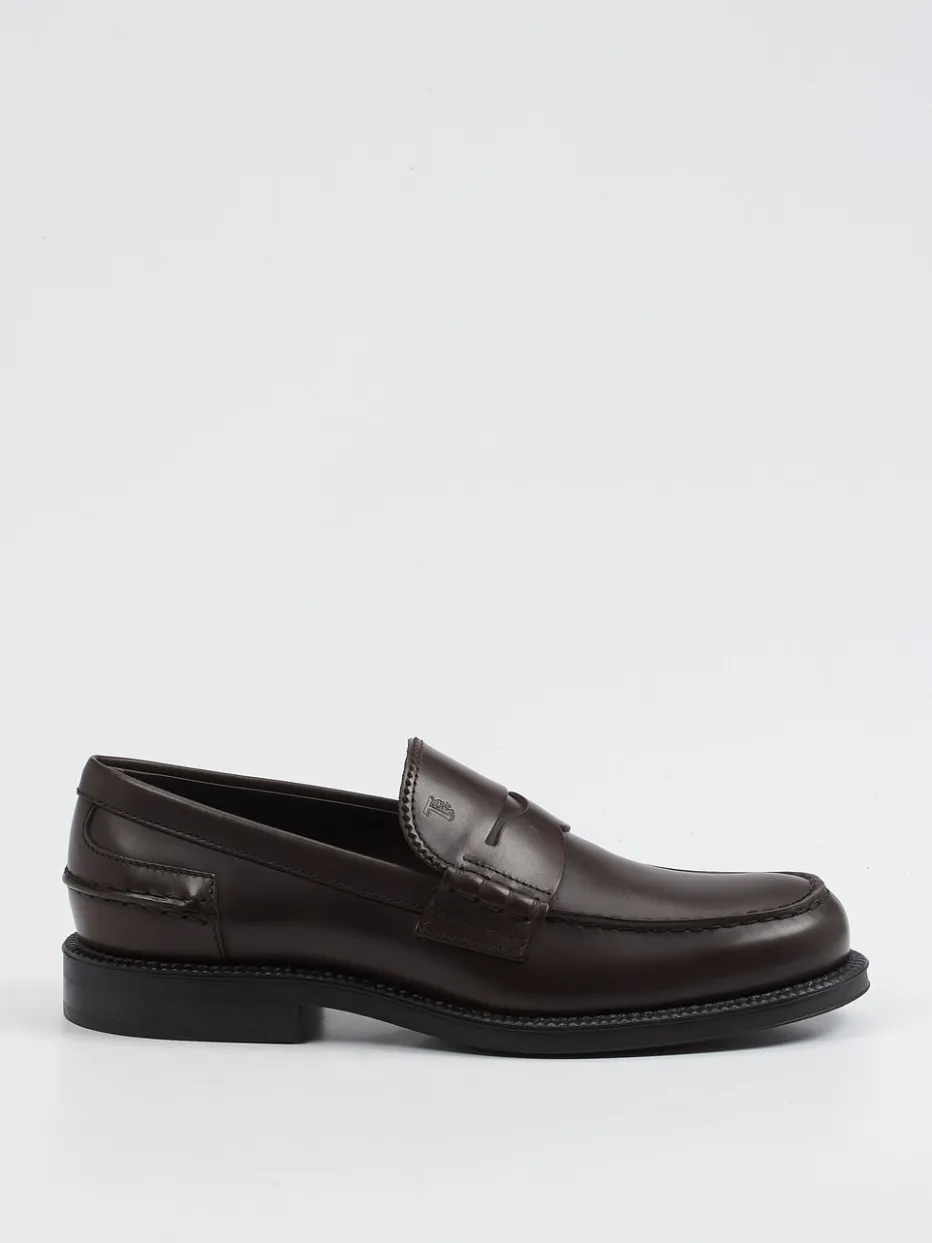 Die italienische Marke Tod’s präsentiert einen klassischen Penny Loafer aus edlem Kalbleder in Dunkelbraun.
