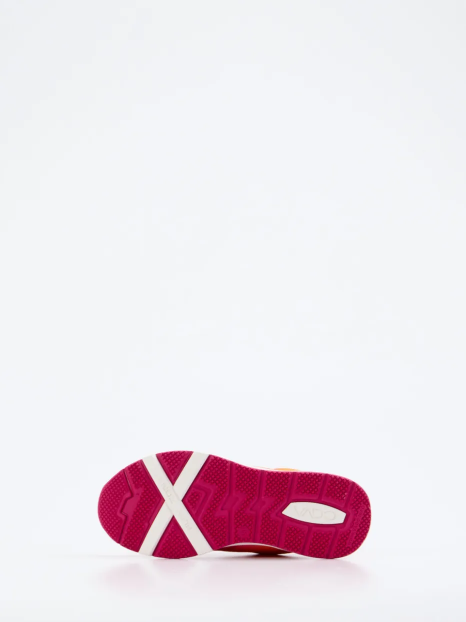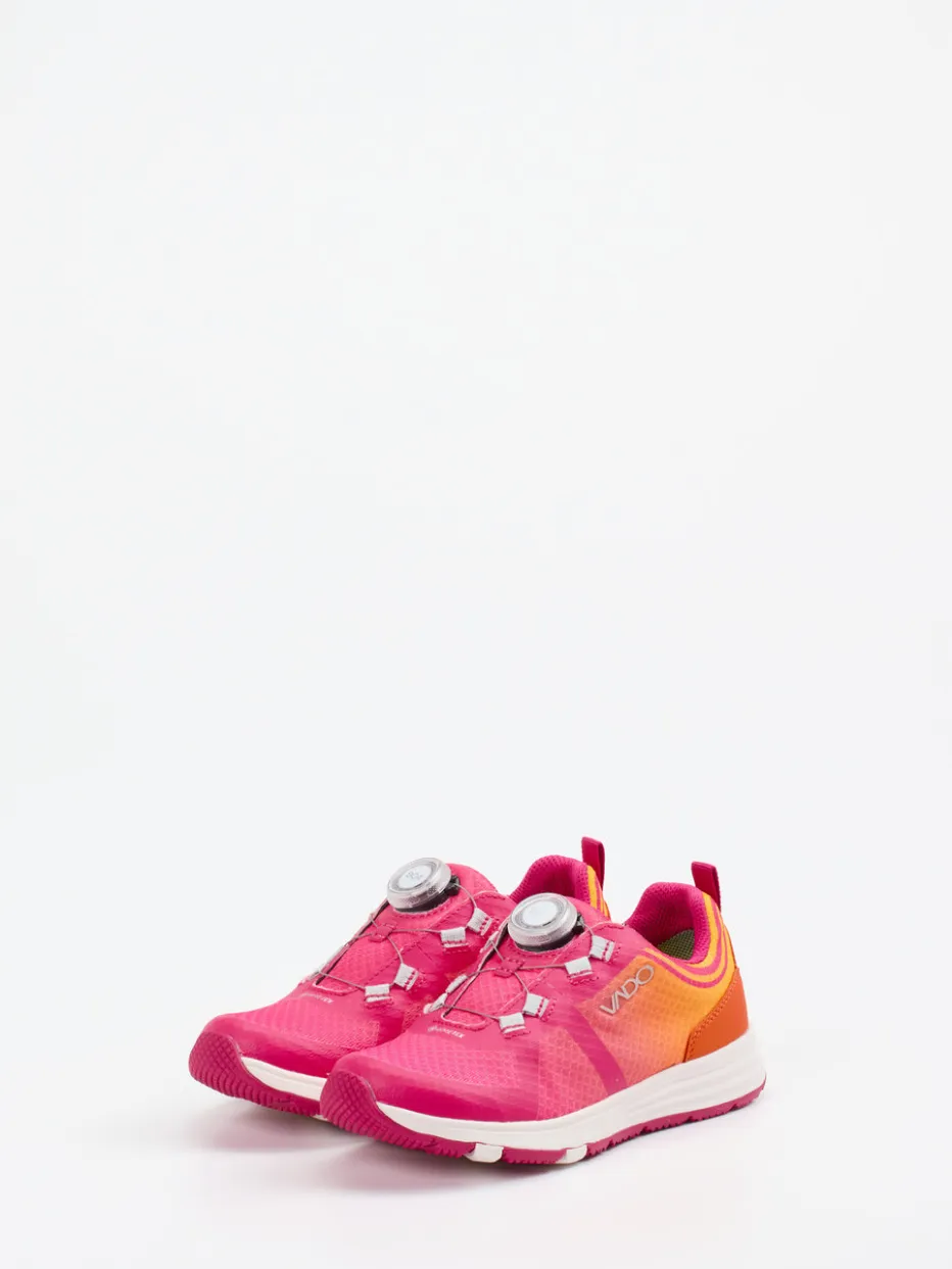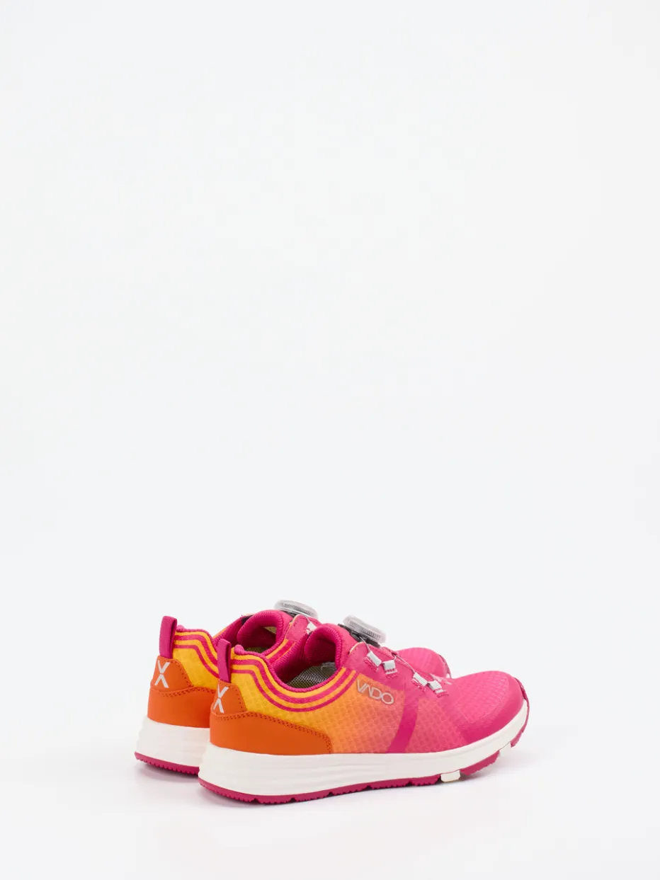 Für aktive Kids mit Stil.Vado bietet mit diesem Performance-Sneaker für Kinder eine sportlich-ausdrucksstarke Wahl für Alltag und Training. Das Modell vereint atmungsaktives Textil-Mesh mit einer matten Oberfläche und setzt auf ein expressives Color-Blocking in Pink und Orange. Der BOA-Drehverschluss ermöglicht schnelles An- und Ausziehen; eine Zuglasche an der Ferse unterstreicht die funktionale Ausrichtung. Die rutschhemmende Gummisohle, reflektierende Details und ein markanter Logo-Print ergänzen das sportliche Design. Ein klarer Trendsetter im Bereich Performance Gear Kids und ideal abgestimmt auf Street- und Techwear-Einflüsse. Vado verbindet Komfort, modernes Design und kindgerechte Performance auf hohem Niveau.