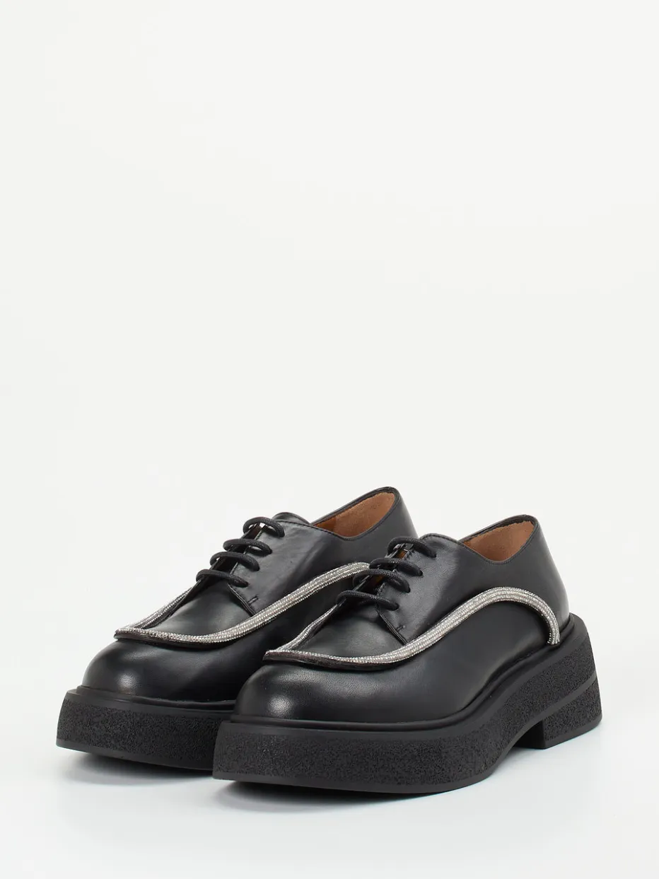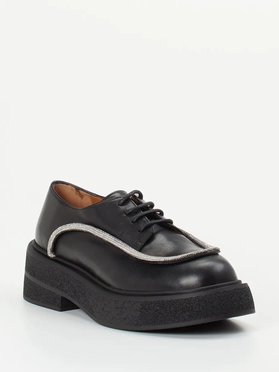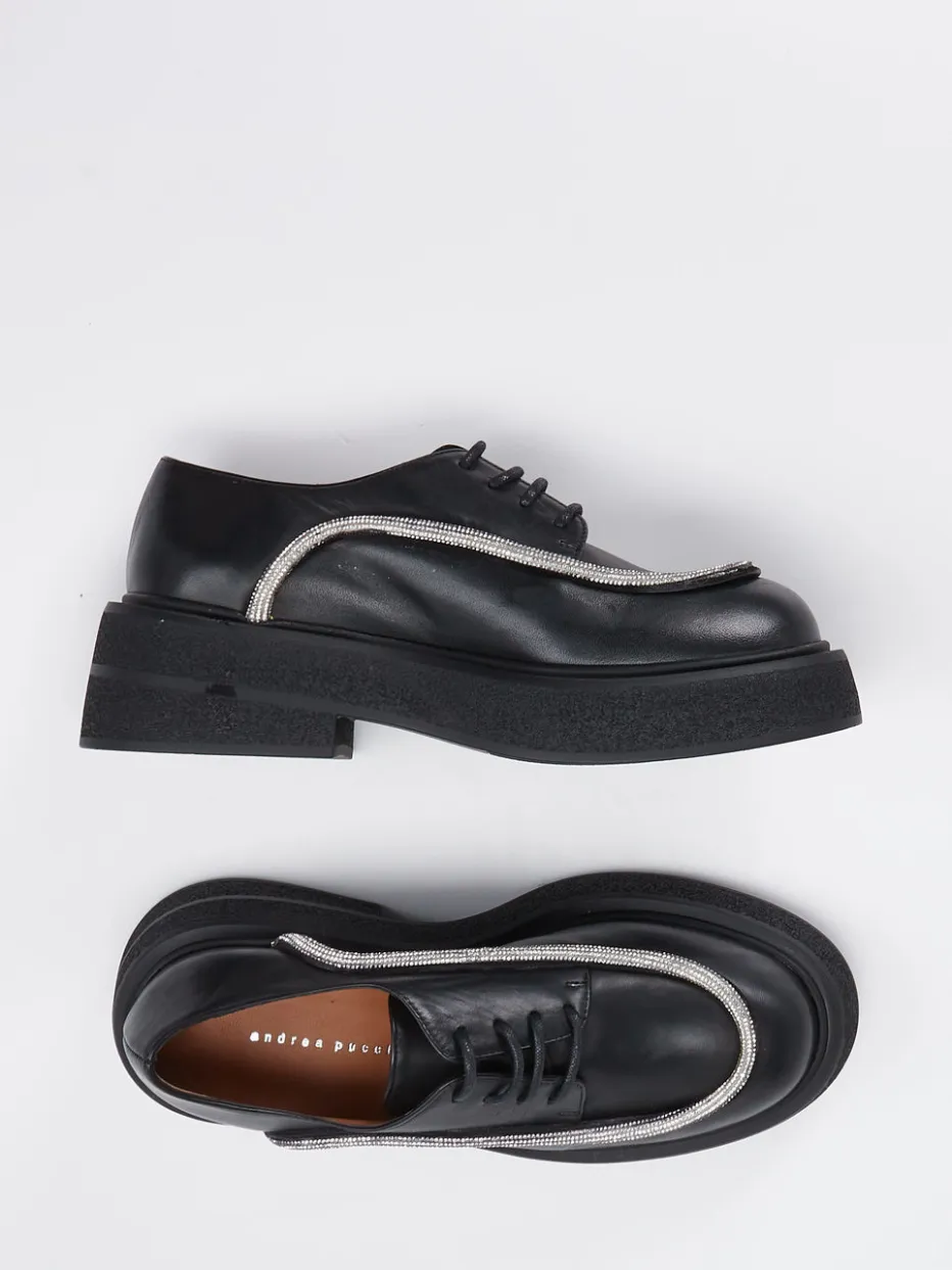 Andrea Puccini zeigt einen modernen Damen-Schnürschuh in Derby-Ausführung.