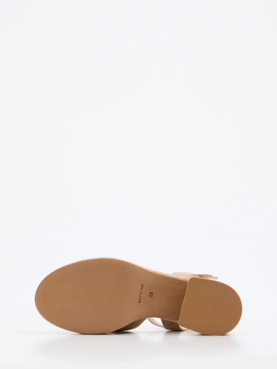 Für ein luftiges City-Outfit oder den nächsten Rooftop-Abend vereint das Modell beigefarbenes, samtig angeschliffenes Veloursleder mit gekreuzten Riemen, goldfarbener Schnalle und offenem Schnitt. Die Kombination aus 6 cm Blockabsatz und 3 cm Plateau sorgt für komfortable Höhe. Details wie das gepolsterte Lammnappafutter und die Gummisohle unterstreichen die Alltagstauglichkeit. Ein Nude-Ton, der sich hervorragend zu fließenden Kleidern und hellen Accessoires kombinieren lässt.