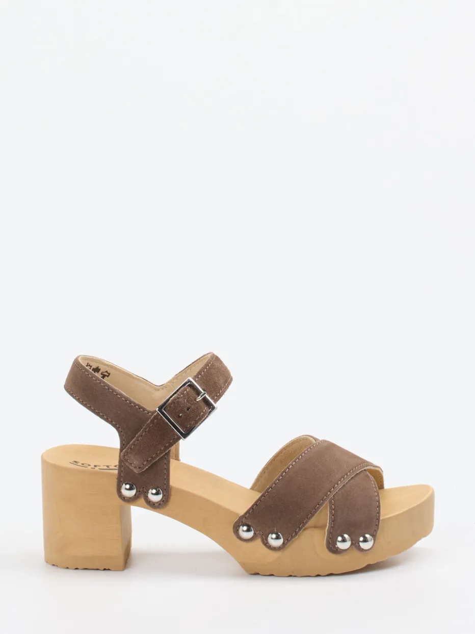 Natürlich inspiriert – mit modernem Komfort.Softclox kombiniert bei diesen Damen-Plateau-Sandalen Retro-Charme mit innovativem Laufgefühl. Ideal für entspannte Sommertage auf Reisen oder im Alltag überzeugt das Modell mit breiten Riemen aus nussbraunem, samtig angeschliffenem Veloursleder. Eine ergonomische Holzsohle mit biegsamer Flexzone erlaubt angenehmes Abrollen und unterstreicht den natürlichen Look. Silberfarbene Nieten und eine metallische Dornschließe setzen stilvolle Akzente. Die offene Silhouette mit Blockabsatz zitiert den lässigen Scandi-Trend, während das klare Design Vielseitigkeit in der Kombination verspricht – ob zu Leinenkleid oder Basttasche. Ein Schuh, der modischen Komfort mit bewusster Materialwahl verbindet – typisch Softclox.