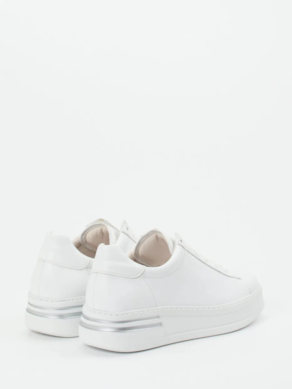 Gabor Comfort präsentiert einen Plateau-Sneaker aus hochwertigem Kalbleder mit edlem Finish.