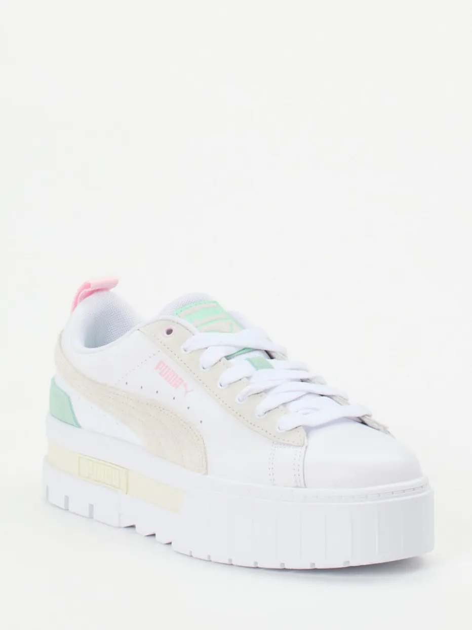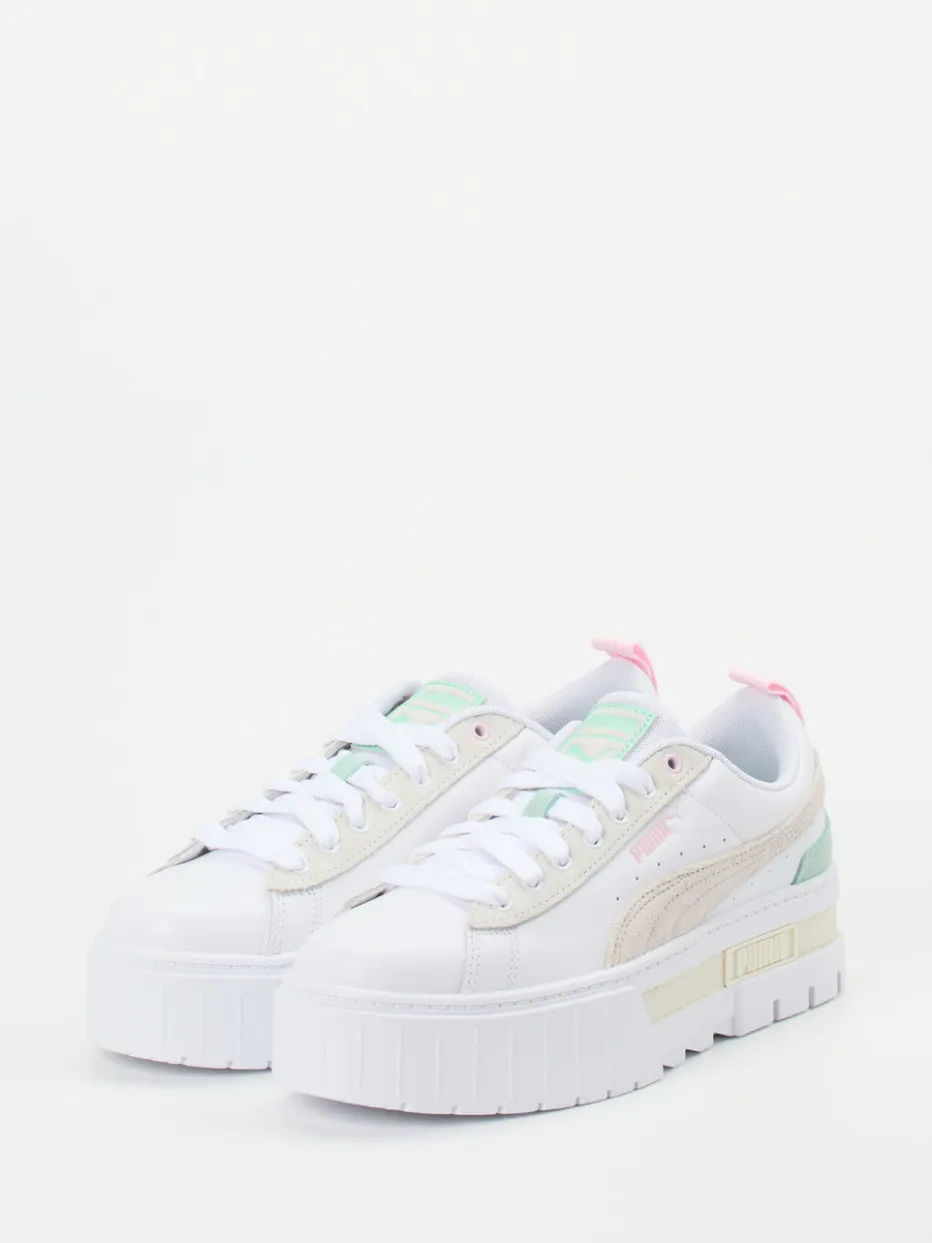 Der Mayze Mix von Puma verbindet Kalbleder mit samtigem Velours und setzt auf trendige Pastellakzente sowie eine markante Plateau-Sohle. Ausdrucksstarkes Design trifft auf modernen Tragekomfort.