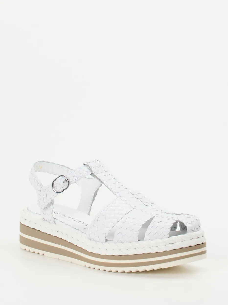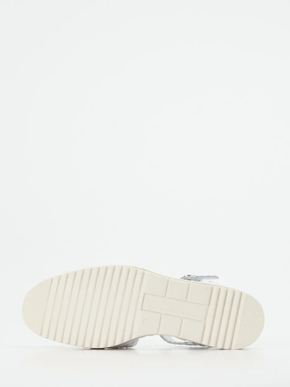 Stilsicher durch sonnige Tage.Pons Quintana präsentiert mit dieser Plateau-Sandellette eine stilvolle Begleiterin für warme Temperaturen. Ob beim Stadtbummel oder auf Reisen – die Sandale bietet durch ihre gepolsterte Innensohle und die profilierte Gummisohle zuverlässigen Komfort. Das weiße Flechtleder mit matter Oberfläche und silberner Schnalle unterstreicht die feminine Silhouette und verleiht einen mediterranen Touch. Die offene Form mit verstellbarem Fersenriemen ergänzt luftige Outfits optimal. Die zweifarbige Plateausohle greift den Craftcore-Trend auf und sorgt für einen modischen Auftritt. Typisch Pons Quintana: anspruchsvolles Design, gefertigt mit Liebe zum Detail.