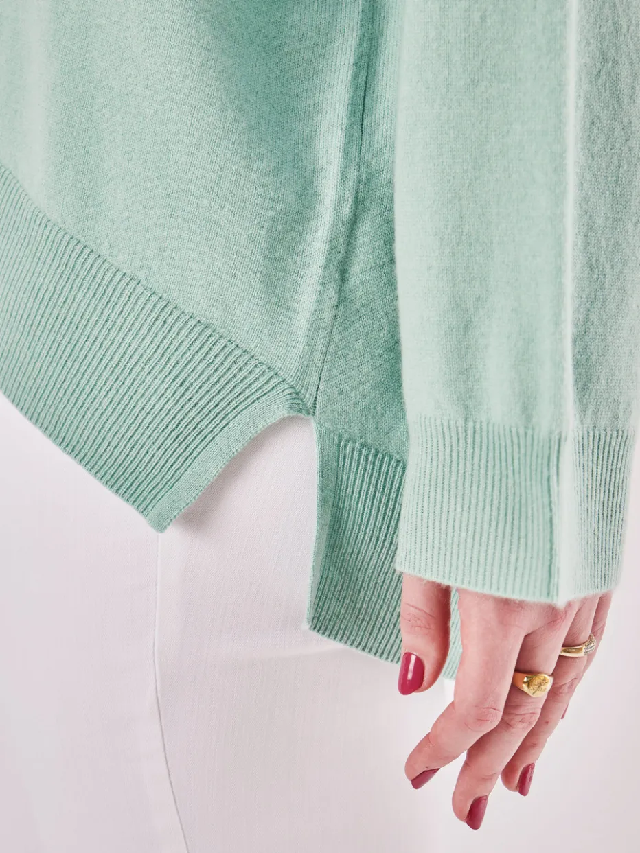 Der Pullover vereint luxuriöse Kaschmirqualität mit modernem Casual Chic – ideal für stilvolle Alltagsszenarien oder entspannte Wohlfühlmomente.