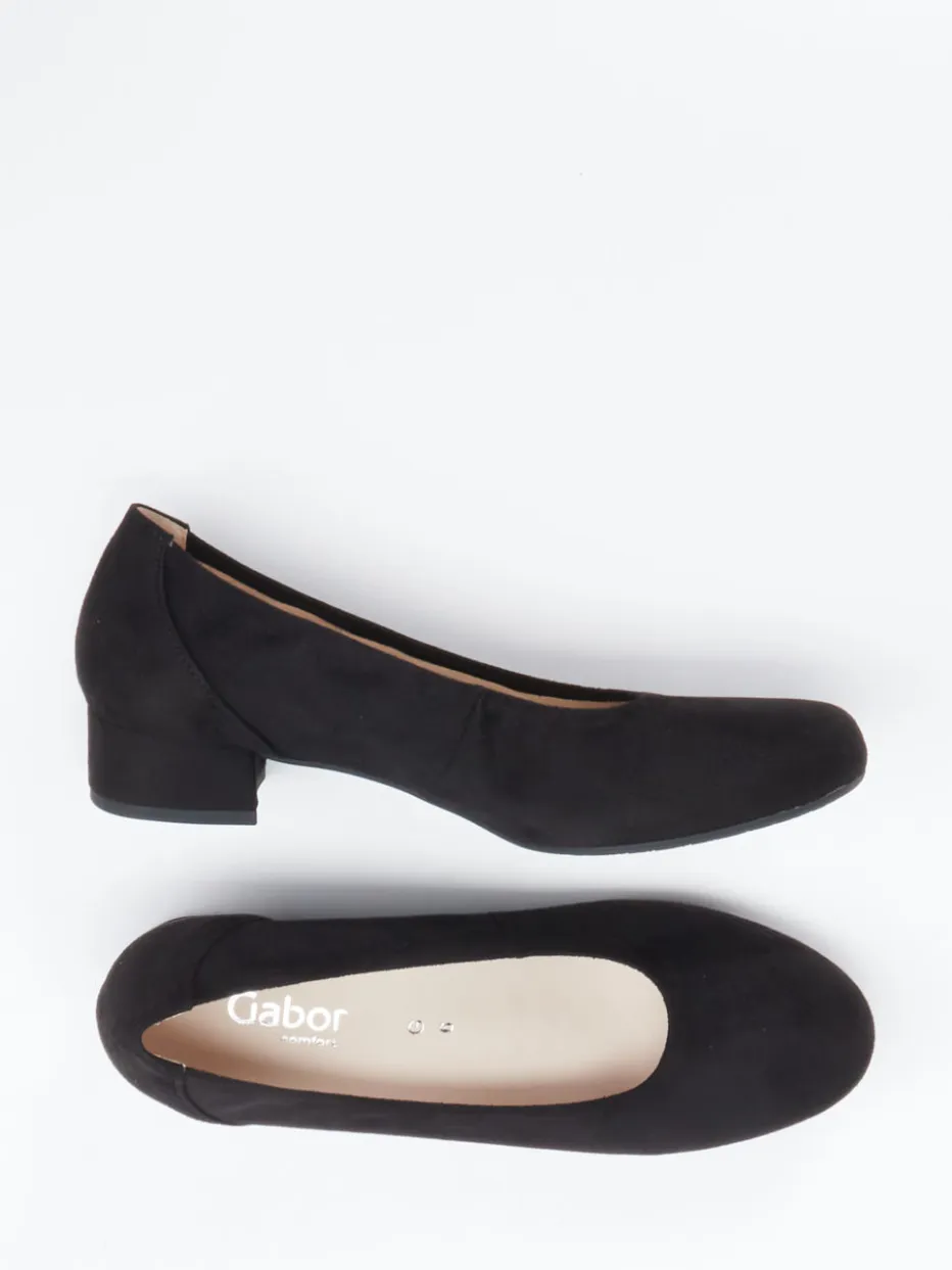 Stilvolle Begleiterin für jeden Tag.Gabor Comfort präsentiert mit diesen Damenpumps ein Modell, das Komfort und Eleganz gekonnt verbindet. Ideal für lange Bürotage oder formelle Anlässe überzeugt der schwarze Pumps dank weich gepolsterter, herausnehmbarer Innensohle und besonders bequemer Weite G. Das synthetische Obermaterial in samtiger Velourslederoptik zeigt sich in matter Ton-in-Ton-Ausführung mit klassisch gerundeter Linie. Der 3,5 cm hohe Blockabsatz sorgt für stabilen Auftritt, während die profilierte Gummisohle Rutschfestigkeit gewährleistet. Der Schlupfschuh ist inspiriert vom „Quiet Luxury“-Trend und passt zu semi-formellen Looks oder cleanen Casual-Outfits. Ein durchdachtes Komfortmodell mit reduzierter Formensprache – typisch Gabor Comfort.