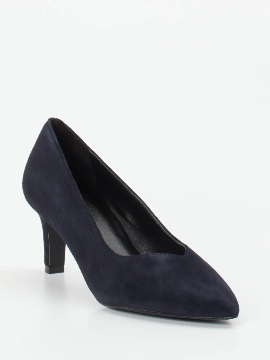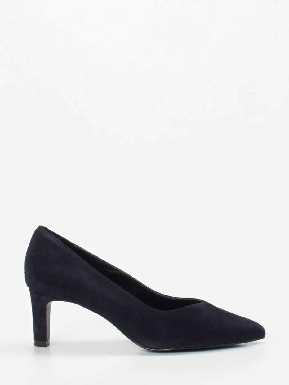 Stilvoller Auftritt mit Understatement.Maripé interpretiert klassische Damenpumps mit einer dunkelblauen Variante aus samtigem Veloursleder. Für elegante Momente im Arbeitsalltag oder bei formellen Anlässen bietet dieser Pump in Schlupfform mit spitzer Kappe und Kitten Heel eine elegante Lösung. Das Veloursleder zeigt sich samtig-matt, die taillierte Form unterstreicht die feminine Silhouette. Der dezente 6 cm hohe Absatz sorgt für komfortable Eleganz, während das Futter aus Kalbleder angenehmen Tragekomfort bietet. Dank des Ton-in-Ton-Designs und der glatten Sohle wirkt der Look ausgesprochen edel. Stilistisch passt das Modell ideal zu minimalistischen Business-Outfits oder zum klassischen Event-Ensemble. Ein vielseitiger Klassiker, der den Trend „Quiet Luxury“ dezent in Szene setzt.
