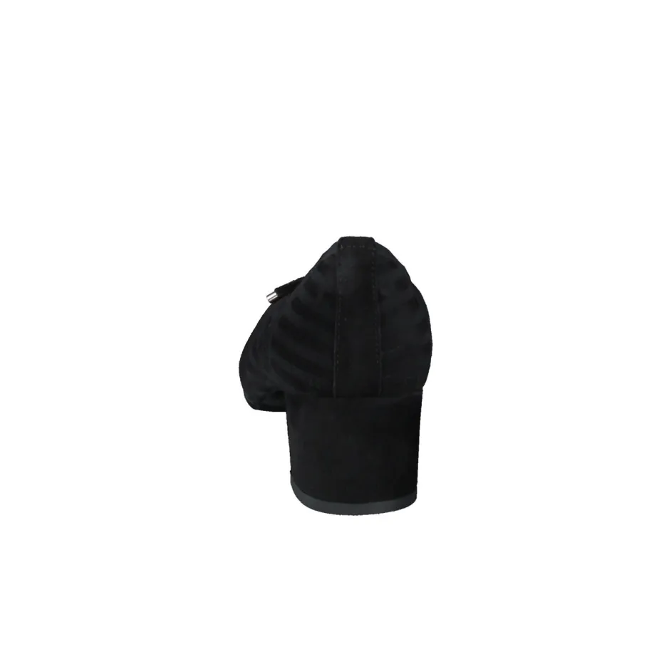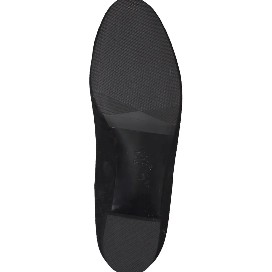 Stilvoller Komfort für jeden Tag.Cinzia Valle präsentiert mit diesen Pumps ein Modell für Damen, das Komfort und Design vereint. Für lange Tage im Büro oder stilvolle Freizeitlooks bieten diese Pumps mit geprägtem, samtig angeschliffenem Veloursleder eine elegante Lösung. Die schwarze Ton-in-Ton-Streifenstruktur verleiht Tiefe, während das Schleifendetail mit silberfarbenen Abschlüssen einen subtilen Akzent setzt. Die klassische, leicht gerundete Silhouette und der elastische Ripseinfass sorgen für angenehmen Halt. Der bezogene Blockabsatz sowie die weich gepolsterte Gummisohle garantieren entspannten Tragekomfort. Inspiriert vom Quiet-Luxury-Trend passt dieses Modell ideal zum minimalistischen Stil. Ein femininer Klassiker mit Cinzia Valle-typischer Bequemlichkeit.