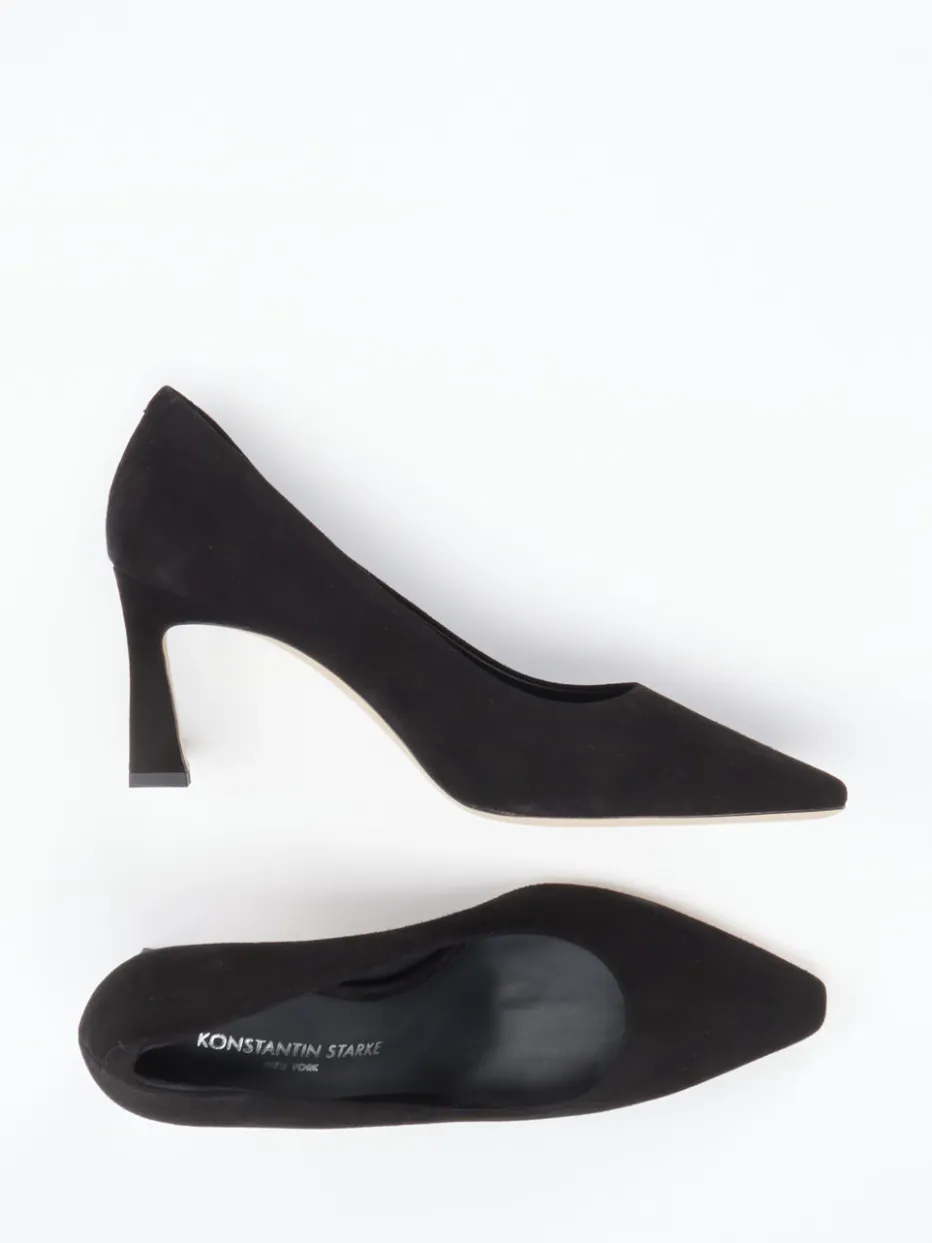 Die Marke Konstantin Starke präsentiert schwarze Pumps in klassischer Silhouette. Das Modell überzeugt mit schmal zulaufendem Schnitt und eleganter Linienführung für einen souveränen Auftritt.