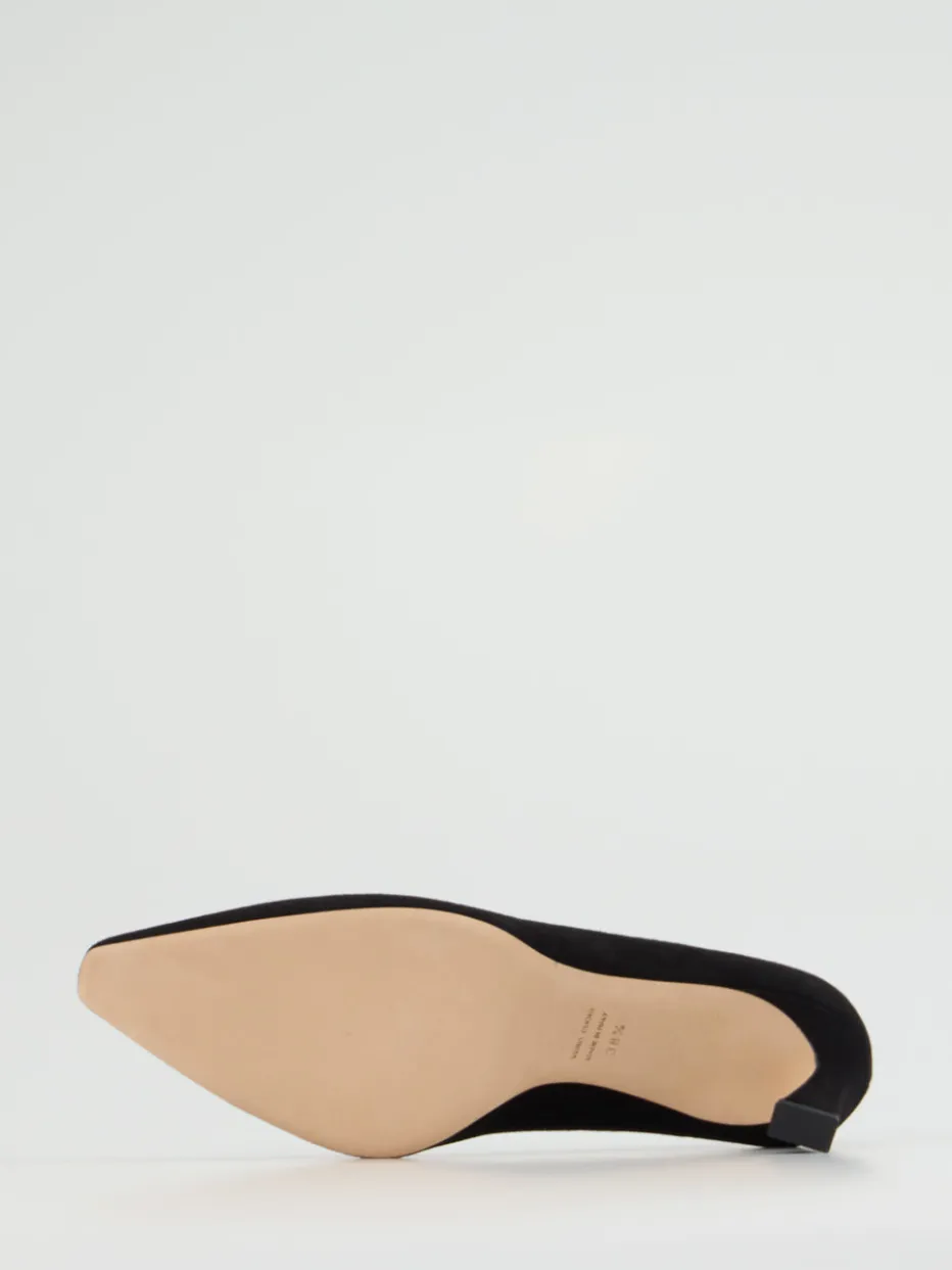 Fein gearbeitetes Veloursleder mit matt strukturierter Oberfläche unterstreicht den hochwertigen Look. Der bezogene Absatz mit 7 cm Laufhöhe sorgt für eine aufrechte Haltung – ideal für Business-Szenarien oder formelle Anlässe. Das designbetonte Ton-in-Ton-Konzept passt hervorragend zu minimalistisch inspirierten Outfits und spiegelt den „Quiet Luxury“-Trend wider. Eine gepolsterte Innensohle verspricht angenehmen Komfort.
