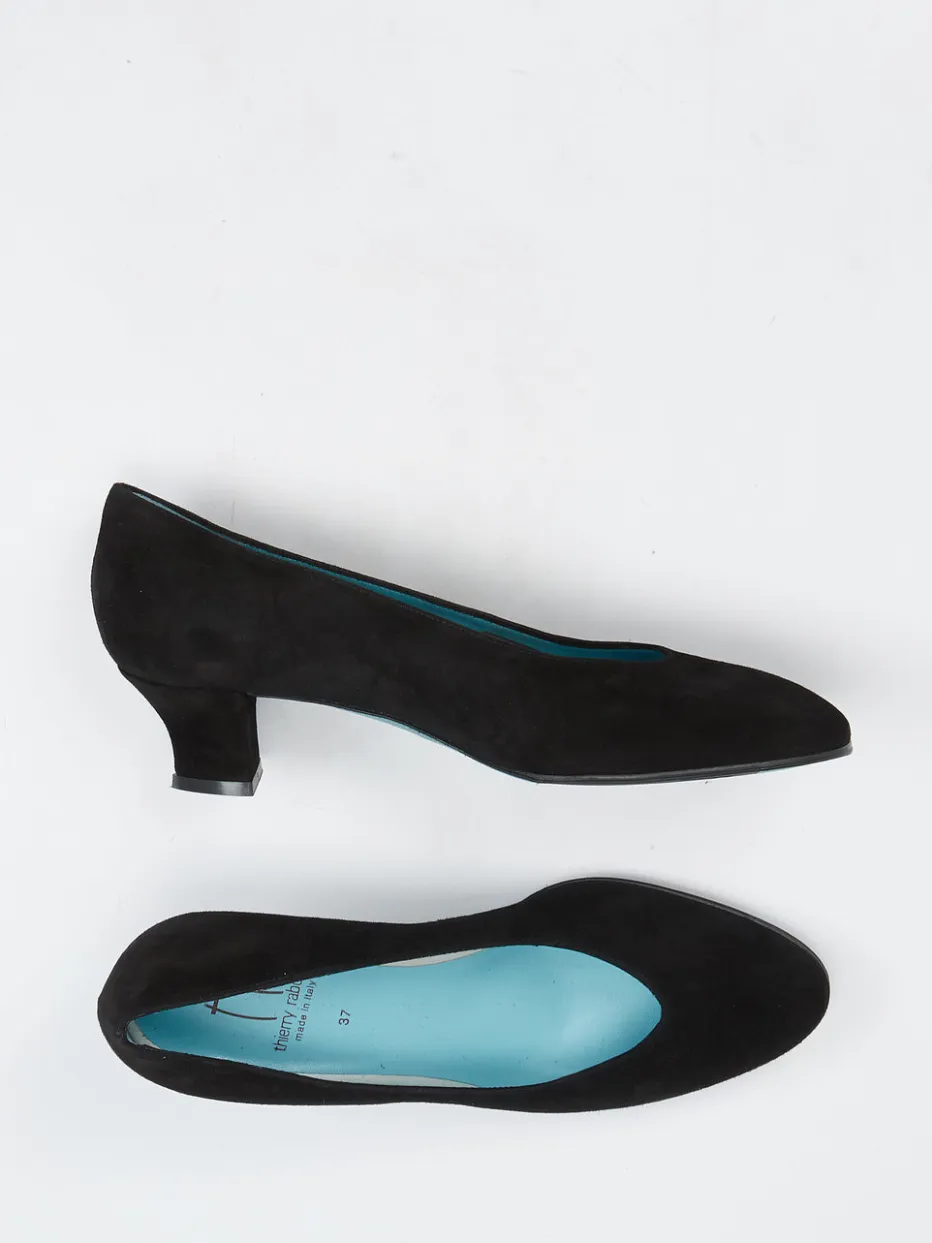 Dieser Mid-Heel-Pump in Schwarz vereint französisch inspirierte Linien mit modernem Minimalismus. Der Kitten Heel und das samtige Veloursleder bieten stilvolle Eleganz und hohen Komfort.