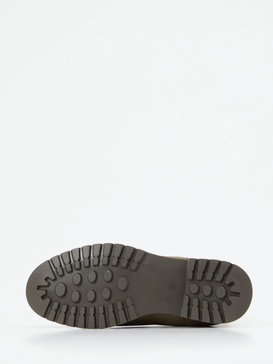 Minimalistische Silhouette, maximaler Komfort.Ralph Harrison präsentiert Chelsea Boots für Damen in klassischer Ausführung. Für kalte Tage geeignet, überzeugt dieses Modell durch taupefarbenes Nubukleder, samtig angeschliffen mit matter Textur. Das warme Lammfellfutter in natürlichem Beigeton sorgt für wohlige Isolation. Designmerkmale wie tonale Nähte, ein seitlicher dunkelbrauner Elastikeinsatz und eine praktische Zuglasche betonen die klare Linienführung. Die profilierte Gummisohle bietet zuverlässigen Grip selbst auf rutschigem Untergrund. Inspiriert vom Quiet-Luxury-Trend passt das Paar ideal zu entspannten Alltags- und Outdoor-Looks. Ein durchdachter Winter-Begleiter mit zeitloser Eleganz aus der Classic Collection.