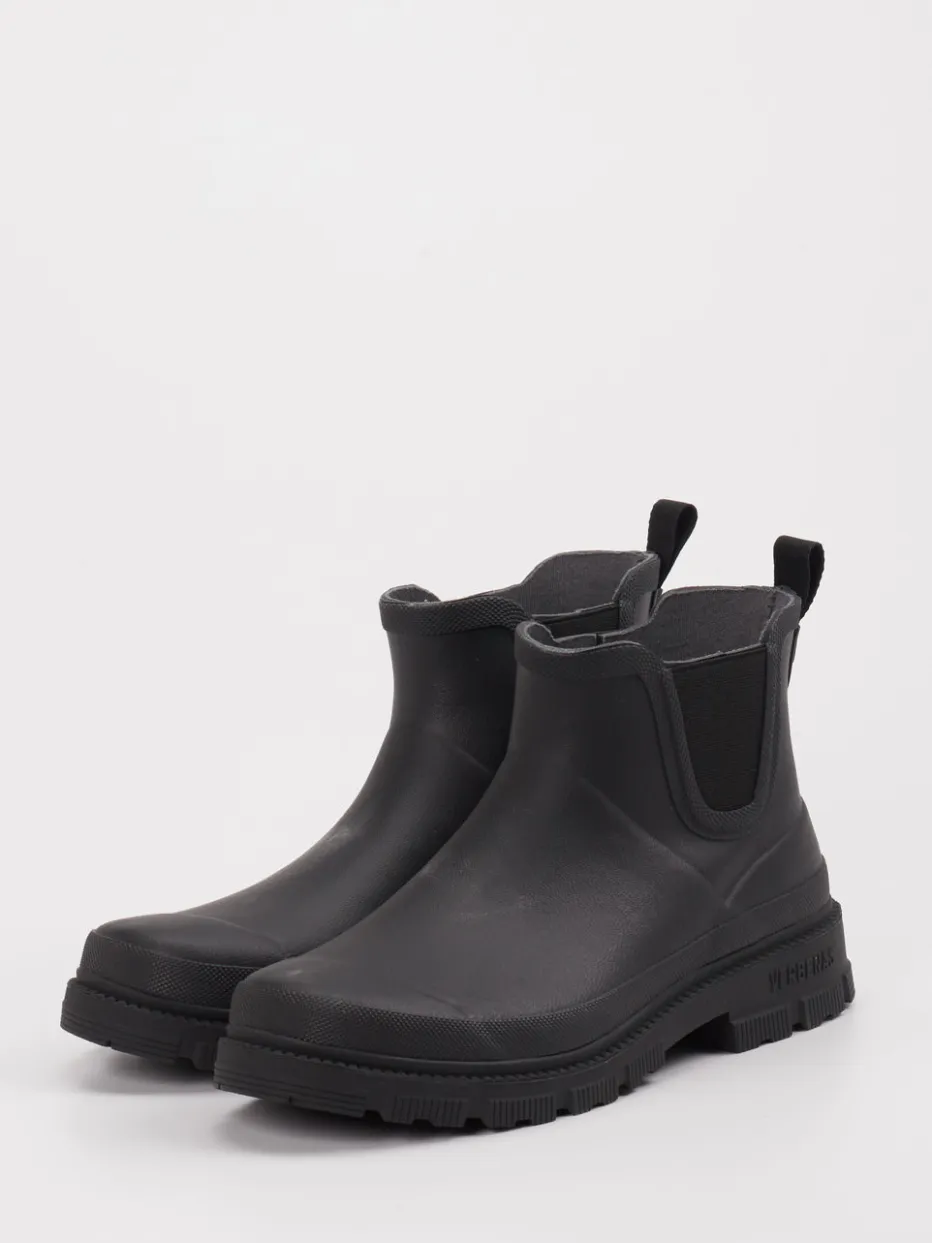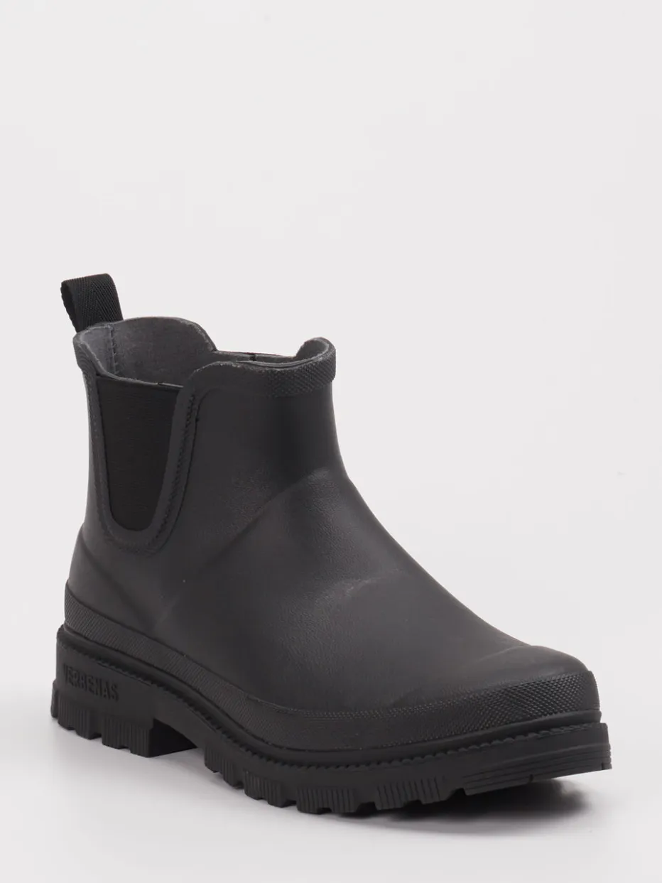 Regenfest durch Stilbewusstsein.Verbenas präsentiert eine unisex Regen-Chelsea-Stiefelette mit funktionalem Charakter. Für regnerische Pendelwege oder Spaziergänge in der Natur bietet dieses Modell zuverlässigen Schutz. Gefertigt aus wasserdichtem Gummi mit matter Oberfläche, ist es nicht nur pflegeleicht, sondern bringt auch eine klare Formsprache mit. Ton-in-Ton gehaltene Elastikeinsätze und eine praktische Zuglasche sorgen für Komfort beim Anziehen. Die profilierte Gummisohle bietet Trittsicherheit, während das Textilfutter innen für angenehmes Tragen sorgt. Inspiriert von Utilitywear und dem Gorpcore-Trend, passt dieser Schuh perfekt zu urbanen Regenjacken und funktionalen Looks. Wettertaugliches Design mit robustem Anspruch – typisch Verbenas.