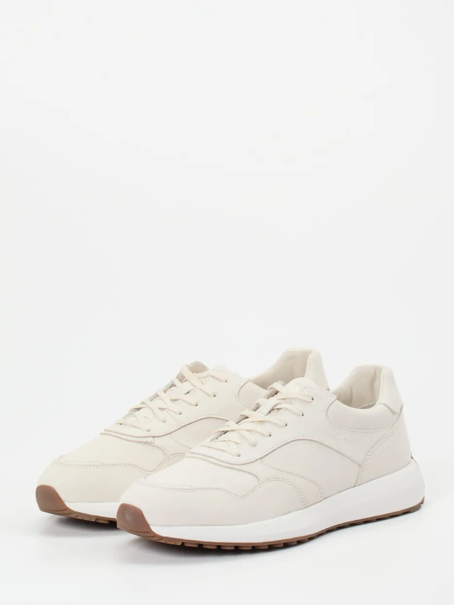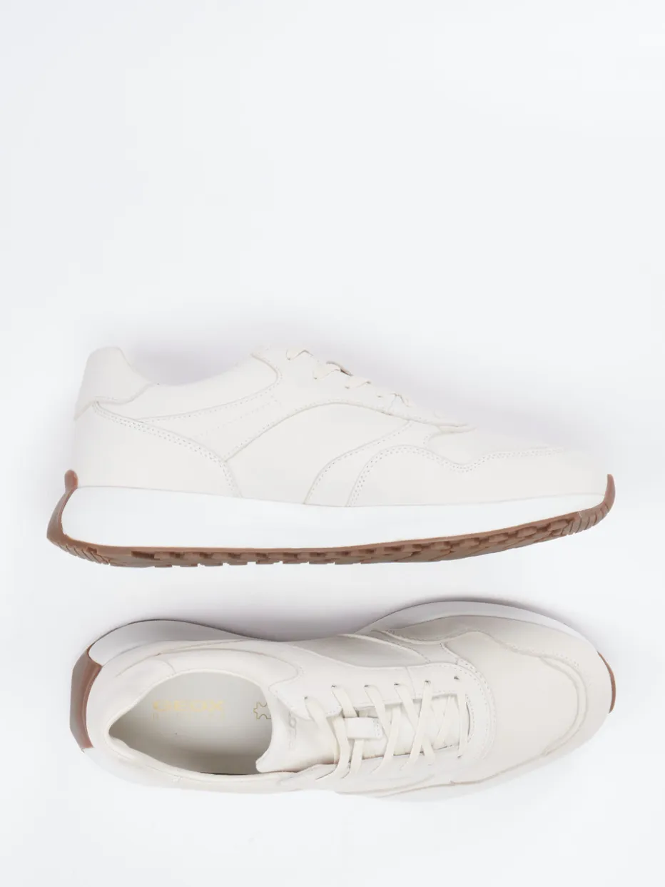 Beige trifft Retro-Minimalismus.Geox präsentiert mit diesem Sneaker einen stilvollen Herren-Retro-Runnner. Ein Alltagsbegleiter für entspannte Tage: Gefertigt aus hochwertigem Kalbleder mit matter Oberfläche und Ton-in-Ton-Nähten, zeigt sich der Schuh in sanftem Cremebeige mit weiß-brauner Sohleneinfassung. Die klassische flache Silhouette wird durch eine geschlossene Schnürung mit verstärkter Ferse ergänzt. Innen verwöhnt ein atmungsaktives Textilfutter mit Wechselsohle – unterstützt durch die bewährte Geox Respira-Technologie. Der Look passt ideal zu „Quiet Luxury“-Outfits in soften Neutraltönen. Eleganz im Retro-Look mit funktionalem Komfort – typisch Geox.