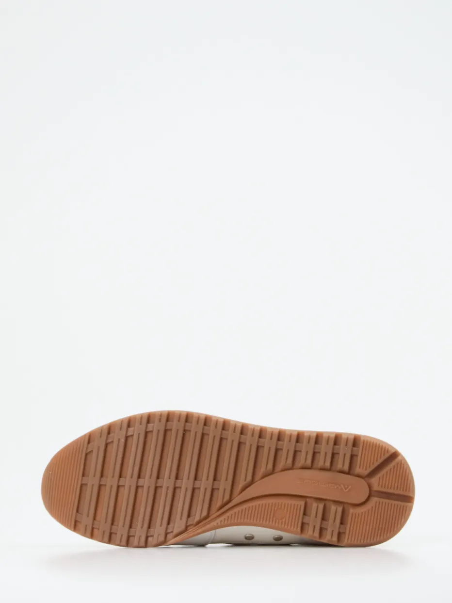Leichtfüßig durch urbane Tage.Ambitious interpretiert den Herren-Sneaker als stilvollen Retro-Runner mit hohem Tragekomfort. Die Kombination aus glattem Lammleder, perforiertem Mesh und samtigem Velours erzeugt eine spannende Textur in Offwhite, Beige und Hellbraun. Die klassische, flache Silhouette mit abgerundeter Spitze trifft auf eine fein profilierte Gummisohle und eine komfortabel gepolsterte Ferse. Eine goldfarbene Logo-Prägung rundet das minimalistische Design ab. Inspiriert vom Look der 80er, passt das Modell perfekt zu Soft-Neutrals und Casual-Looks der Saison. Ein Sneaker für stilvolles Understatement und modernen Komfort.
