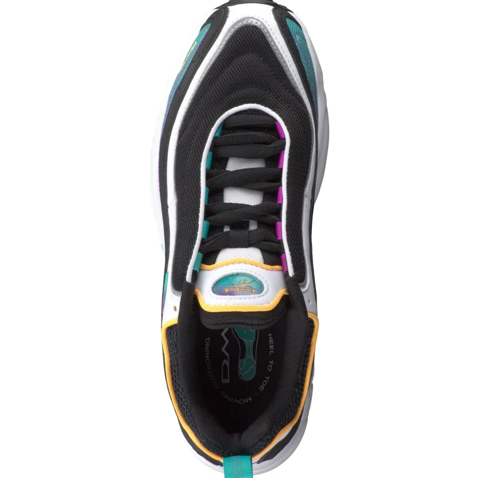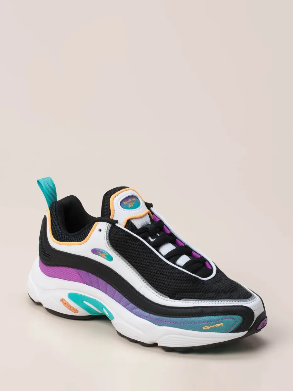 Stil-Statement für dynamische Street-Looks.Reebok präsentiert mit diesem Sneaker ein markantes Modell im Retro-Laufschuhstil. Ideal für spontane City-Touren oder sportliche Freizeitmomente: Das atmungsaktive Mesh kombiniert mit strukturiertem Synthetikleder bietet leichten Tragekomfort und Stabilität. Die schwarze Grundfarbgebung wird durch violette, türkise und weiße Akzente im Stil des aktuellen Color-Blocking-Trends inszeniert. Die sportlich-dynamische Silhouette, gepolsterte Elemente und eine farbige Profilsohle mit DMX-Dämpfung verbinden Retro-Vibes mit moderner Funktionalität. Asymmetrische Schnürung, Zungenlogo und Zugschlaufe setzen Design-Statements. Authentische Y2K-Ästhetik trifft bei Reebok auf durchdachte Performance.