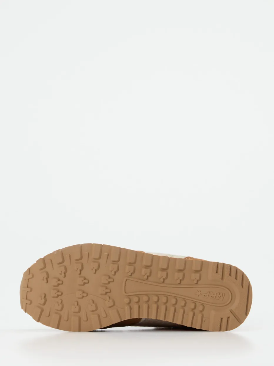 Starke Kontraste im Retro-Look.MRP bringt mit diesem Sneaker eine stilvolle Variante im Retro-Runner-Stil für den Alltag. Ideal für trendorientierte Streetstyle-Outfits verbindet er weiches Veloursleder mit griffigem Filz und glanzvollem Metallicleder an der Ferse. Beige und hellbraune Farbnuancen treffen auf orange Color-Blocking, dazu setzt die Logo-Stickerei an der Seite ein klares Markenstatement. Die gepolsterte Innenausstattung aus atmungsaktivem Textil sowie das komfortable Wechselfußbett sorgen für angenehmes Laufgefühl. Passend zur sportlichen Silhouette bietet die profilierte Gummisohle sicheren Grip. Perfekt zu Jogpants oder Oversized Hoodies kombinierbar. Ein Statement-Sneaker mit hochwertigem Material-Mix und markantem Designanspruch.