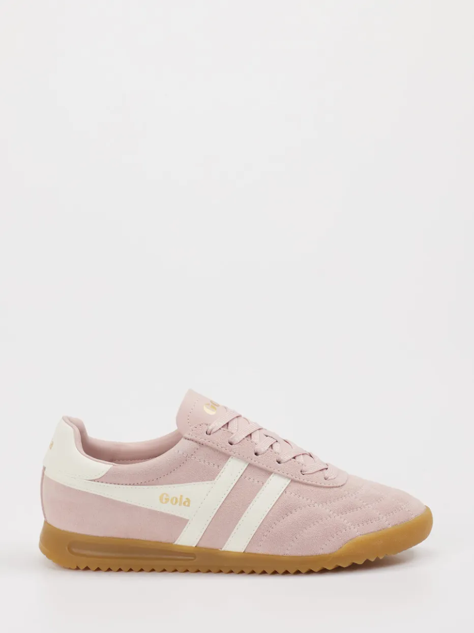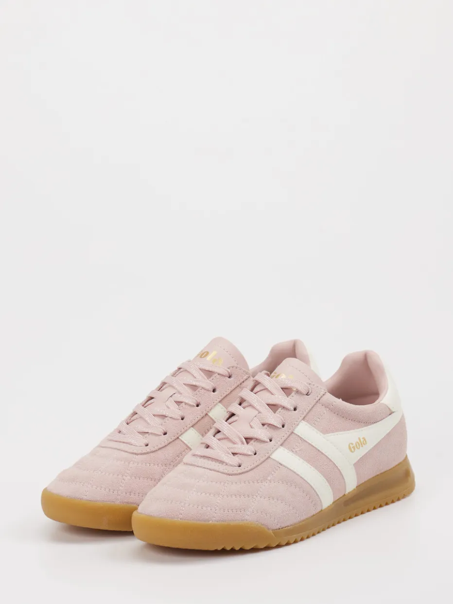 Altrosa neu interpretiert. Der Damen-Sneaker von Gola bringt Retro-Flair in moderne Freizeit-Outfits. Ideal für entspannte Tage in der Stadt oder beim Wochenendtrip, überzeugt das Modell mit hochwertigem Veloursleder in angesagtem Altrosa. Die flache, schmale Silhouette wird durch cremeweiße Kontraststreifen und eine honigbraune Gummisohle stilvoll ergänzt. Goldfarbene Logodetails unterstreichen die Vintage-Ästhetik mit elegantem Akzent. Dank profilierter Laufsohle und weichem Textilfutter ist der Sneaker angenehm zu tragen und folgt zugleich aktuellen Pastell- und Streetwear-Trends. Besonders fein zu kombinieren mit hellen Sommerjeans oder luftigen Kleidern. Ein echter Blickfang im Retro-Revival der neuen Saison – urban, leicht und modisch.