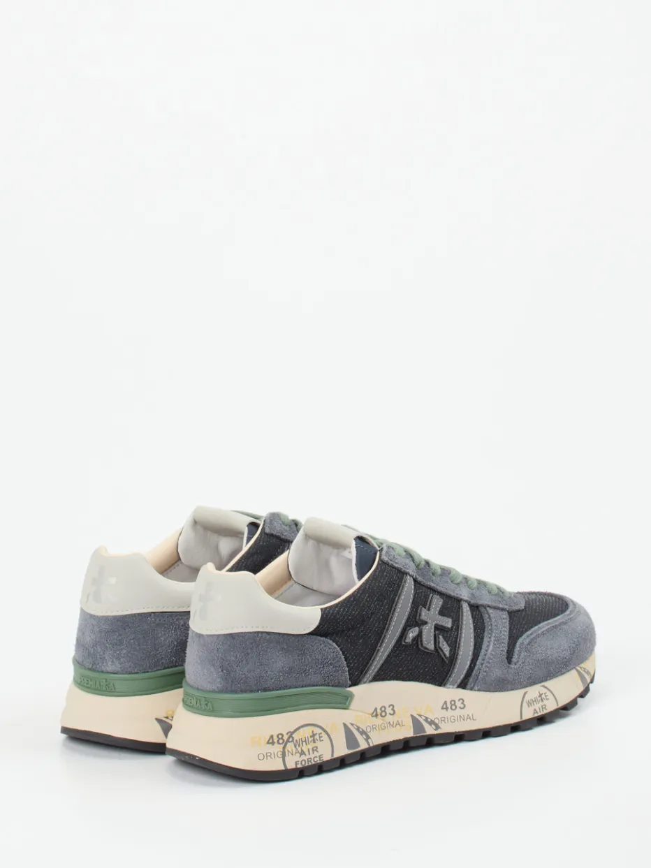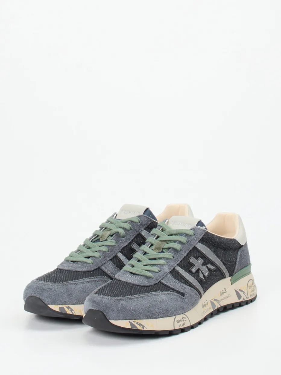 Dieser Retro-Sneaker von Premiata vereint hochwertigen Materialmix mit urbanem Streetstyle-Flair. Die bedruckte Sohle und das salbeigrüne Detail setzen stilvolle Akzente.