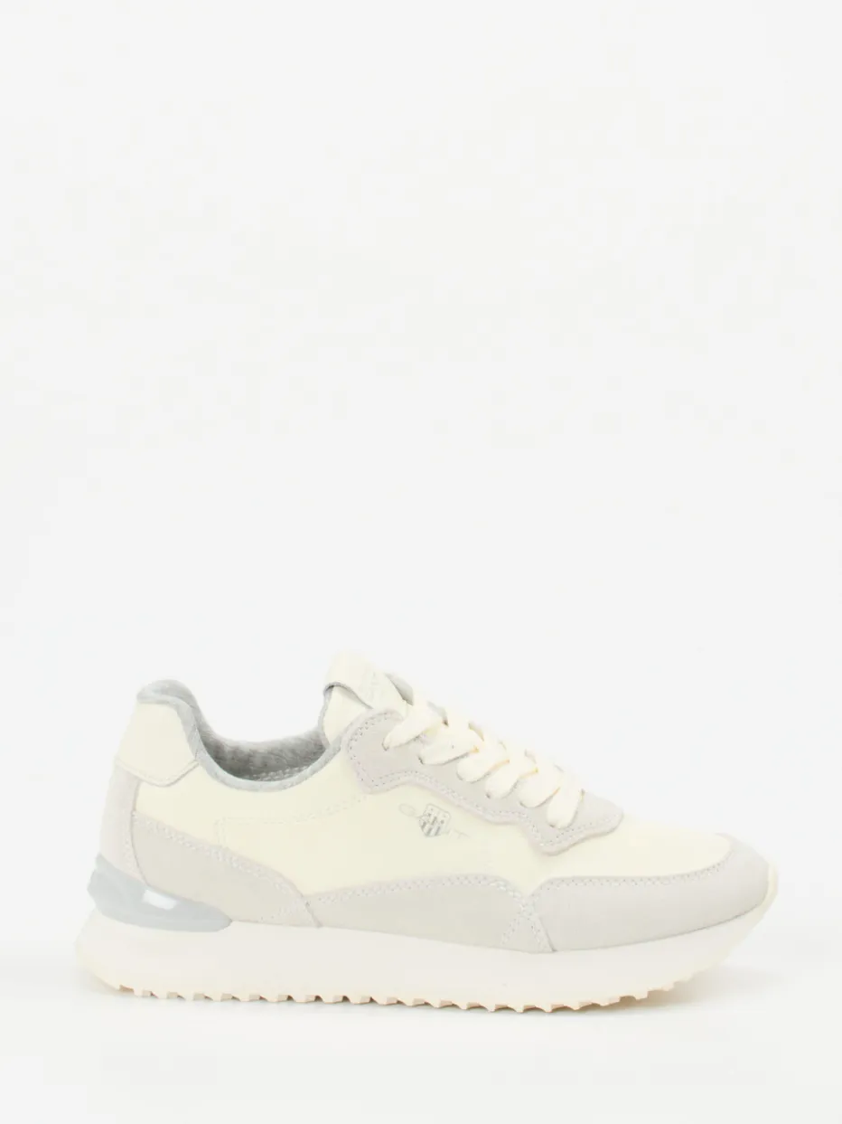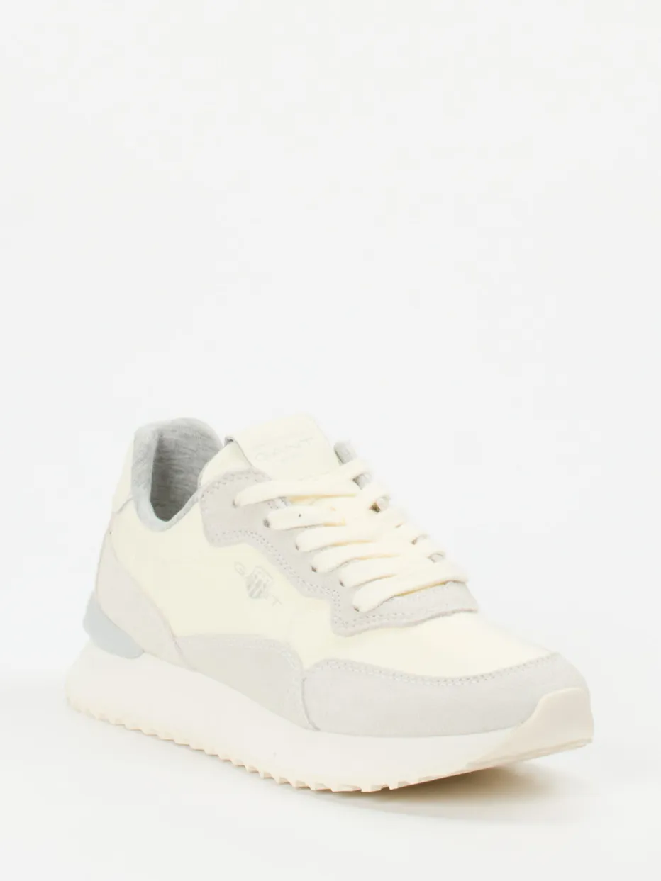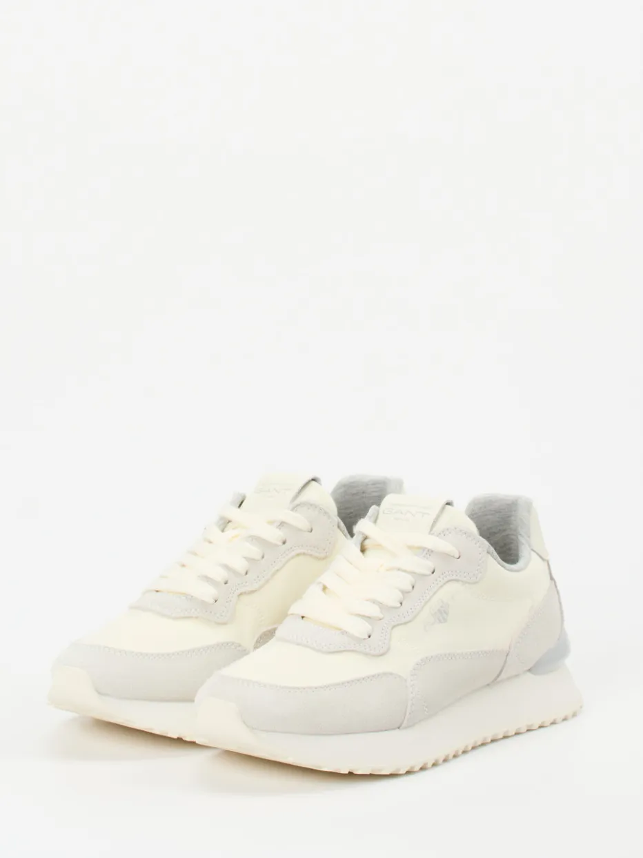 Stil und Komfort im Vintage-Look.Der Damen-Sneaker von Gant vereint klassisches Design mit modernem Fußkomfort. Ob beim Stadtbummel oder entspannten Treffen im Café – dieser Retro Runner trifft den Nerv der ruhigen Ästhetik. Die Kombination aus cremefarbenem Nylon und samtig angeschliffenem Veloursleder verleiht dem Schuh eine unaufdringliche Eleganz. Mit gepolstertem Einstieg, weichem Textilfutter und einer robust profilierten Gummisohle bietet er zuverlässigen Komfort. Tonale Nähte, hellgraue Akzente und eine dezente Markenprägung verleihen dem Modell eine klare Formsprache. Ideal für lässige Stilvarianten mit Jogpants oder Steppjacke. Gant steht für entspannten Chic zwischen Heritage und Alltag.