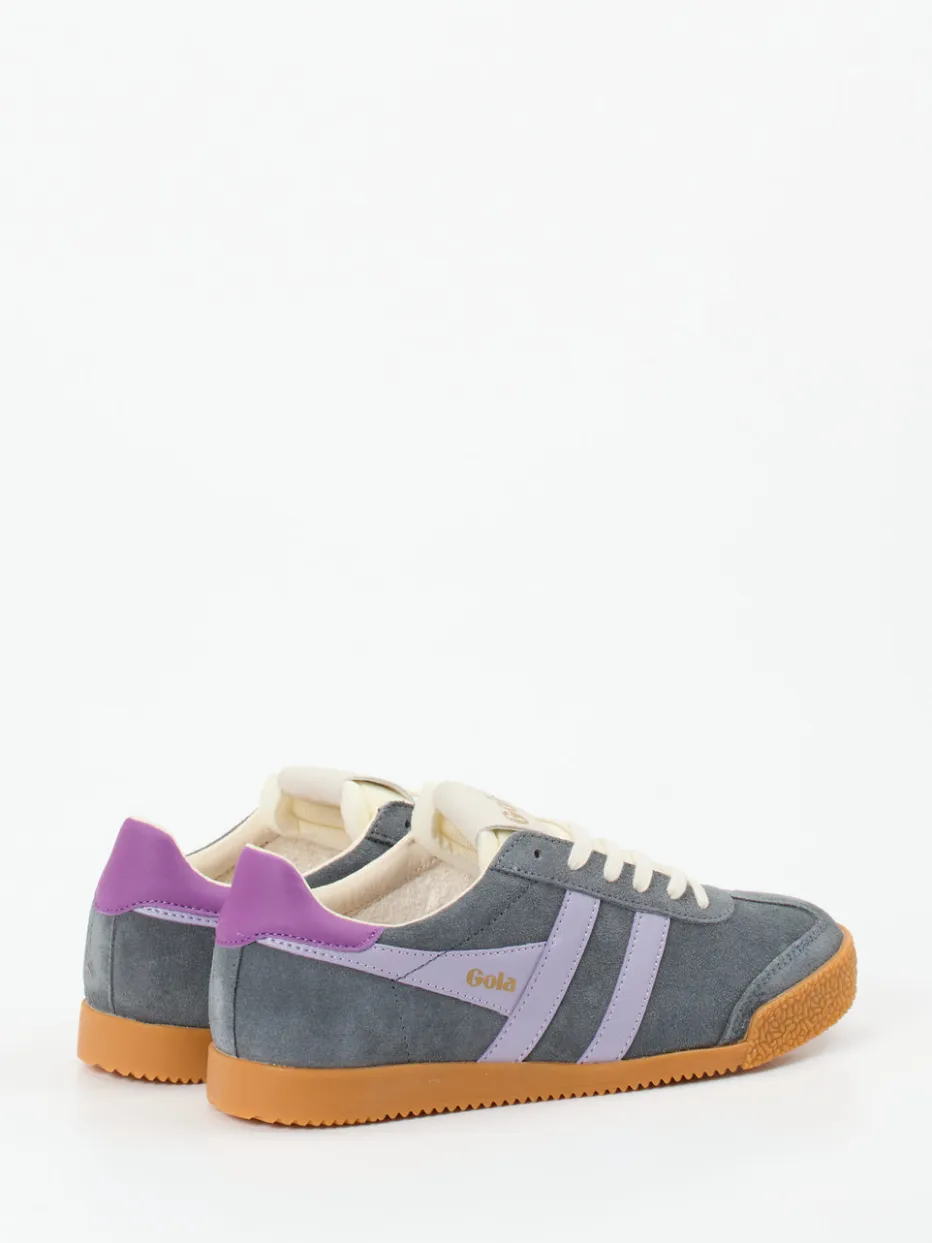 Style-Revival mit Komfortfaktor.Gola liefert mit diesem Sneaker ein modisches Statement für die Freizeit. Ideal für urbane Tage mit hohem Anspruch an Style und Komfort: Der Retro-Sneaker besteht aus grauem Veloursleder mit samtiger Haptik und punktet mit kontrastierenden Details in Flieder und Cremeweiß. Die flache, schmale Form, ein goldfarbener Markenprint sowie die verstärkte Fersenkappe unterstreichen den Vintage-Charakter. Innen sorgt eine Kombination aus Leder und Frottee für angenehmes Tragegefühl, die profilierte honigfarbene Gummisohle bietet sicheren Halt. Besonders trendaffin: perfekt zu Pastell-Socken und Trackpants. Gola vereint authentisches Retro-Design mit zeitgemäßem Alltagskomfort.