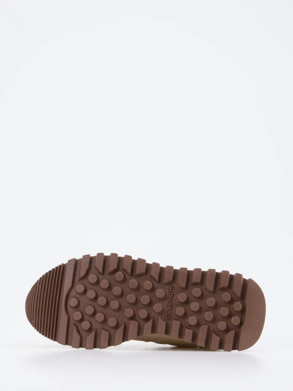 Beiger Retro-Sneaker für Streetstyle-Momente.Gant präsentiert mit diesem Unisex-Sneaker ein Modell in retroinspirierter Runner-Optik. Ideal für entspannte Alltagsszenarien überzeugt der Schuh durch die Kombination aus Veloursleder und Textil mit angenehm weicher Haptik. Das cremebeige Obermaterial mit sandfarbenen Akzenten und mittelbraunen Details strahlt Zurückhaltung und Stilbewusstsein aus. Die klassische flache Form, dezente Ton-in-Ton-Nähte und eine ausgeprägt profilierte Gummisohle verbinden Ästhetik mit Funktion. Geprägtes Branding und die praktische Zuglasche runden das Design ab. Perfekt zum Casual-Look oder natürlichen Tönen im Urban Style. Gant steht hier für modische Vielseitigkeit mit hohem Tragekomfort.