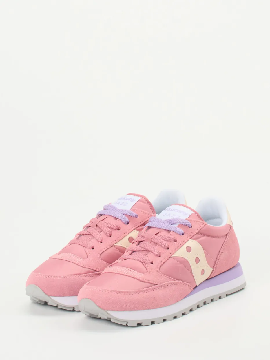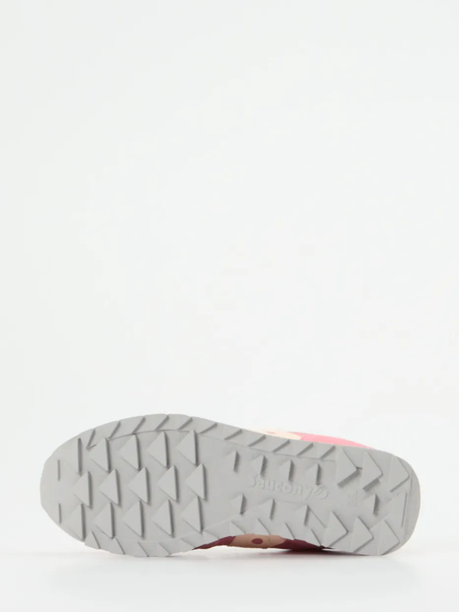 Pastellfarben neu interpretiert.Saucony kombiniert in dieser Damen-Sneaker-Kreation klassischen Retro-Runner-Charme mit modernen Farbakzenten. Ideal für farbenfrohe City-Stylings oder entspannte Wochenendausflüge: Der Sneaker besteht aus samtig angeschliffenem Veloursleder und atmungsaktivem Textil in Himbeerrosa. Fliederfarbene und cremebeige Details sowie eine Ton-in-Ton-Schnürung mit Farbwechsel sorgen für visuelle Spannung. Die flache Silhouette mit gepolsterter Zunge und eine dreifarbige Gummisohle mit markantem Profil versprechen Tragekomfort und Trittsicherheit. Inspiriert vom Y2K-Trend trifft hier Retroästhetik auf aktuelle Pastelltrends. Ein stilbewusster Allrounder mit ikonischem Streetwear-Flair.