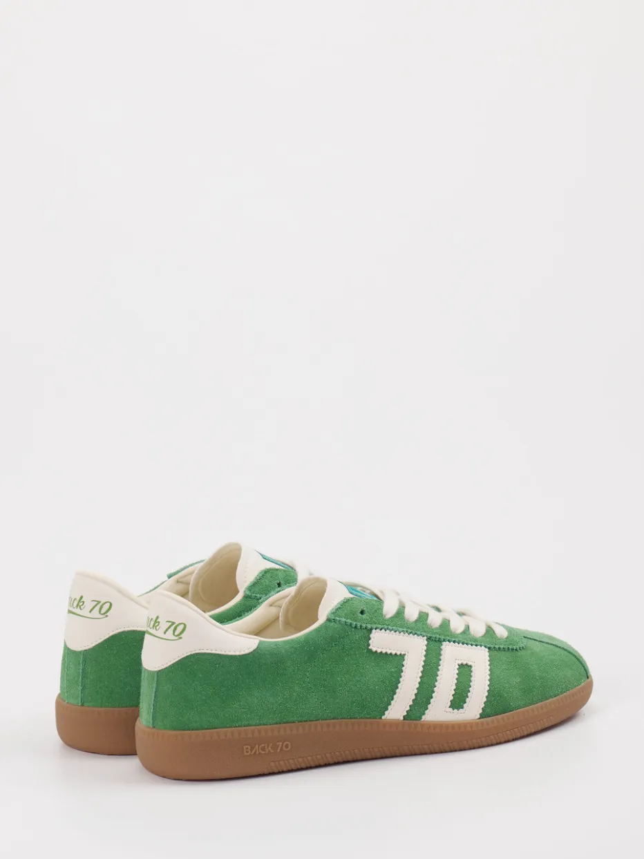 Ideal für urbane Freizeitlooks verbindet er weiches Veloursleder mit cremeweißen Kontrastdetails und einer seitlich applizierten „70“-Zahl. Die flache, schmale Silhouette und das Zungenlabel betonen den Vintage-Charme. Eine griffige Gummisohle sorgt für Trittsicherheit, während das weiße Textilfutter Komfort bietet. Streetwear-Elemente und die Farbgebung setzen auf den Trend der Retro-Football-Ästhetik. Besonders gut kombinierbar mit 70s-inspirierten Jogpants oder Oversize-Shirts.