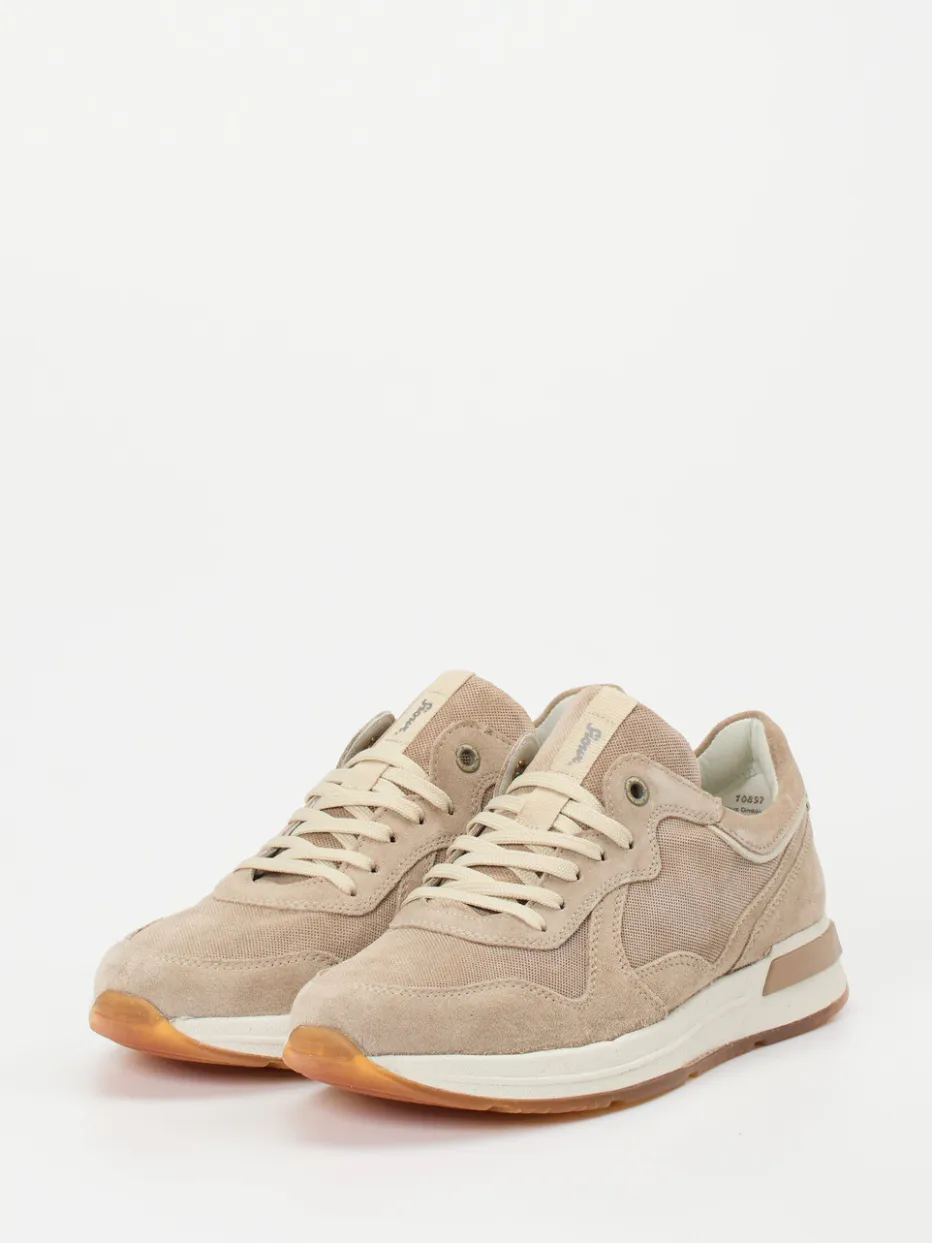 Authentischer Style für entspannte Tage.Sioux zeigt mit dem Herren-Sneaker in klassischer Retro-Runner-Silhouette einen stilsicheren Begleiter für Alltag und Freizeit. Ob beim Stadtbummel oder entspannten Treffen mit Freunden – durch das helle Veloursleder mit samtig angeschliffener Struktur und Einsätzen aus feinem Textilmesh überzeugt das Modell in Naturtönen auf ganzer Linie. Der Materialmix verleiht dem Sneaker Leichtigkeit und Struktur. Ein gepolsterter Einstieg, Frotteefutter und ein herausnehmbares Fußbett bieten alltagstauglichen Komfort. Die strukturierte, weiße Gummisohle mit farblichem Kontrast greift sportliche Designelemente auf. Perfekt kombinierbar mit Chinos oder Casual Denim. Hochwertig verarbeitet für moderne Lässigkeit mit handwerklichem Anspruch.
