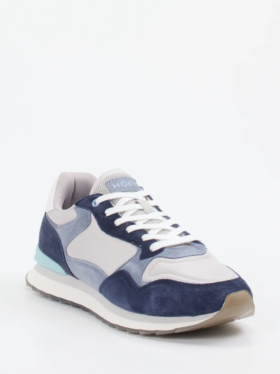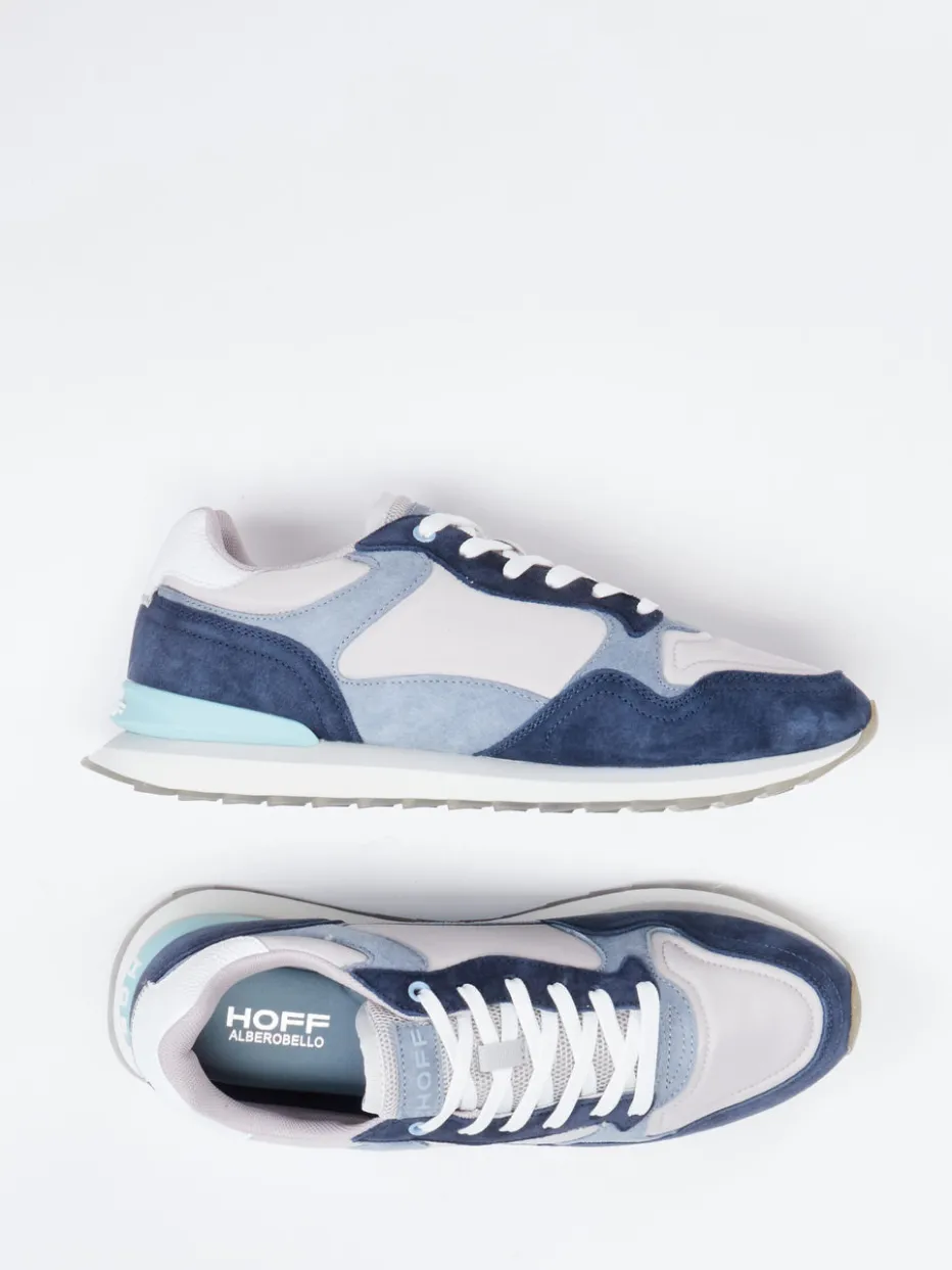 City-Sneaker mit Retro-Flair.THE HOFF BRAND präsentiert mit diesem Sneaker einen stilvollen Vertreter der Retro-Runner-Kategorie. Perfekt für entspannte Städte-Touren oder urbane Freizeit-Outfits: Der Mix aus samtig angeschliffenem Veloursleder und grauem Textil-Nylon strahlt hochwertige Lässigkeit aus. Hellgrau dominiert den Look, während Mintgrün an der Ferse und blaugraue Overlays den Soft-Color-Blocking-Trend betonen. Die individuell bedruckte Gummisohle mit Waffelprofil zeigt ein Stadtmotiv als grafisches Highlight. Der gepolsterte Schaft, das Textilfutter sowie das herausnehmbare Fußbett sorgen für angenehm weichen Trittkomfort. Design trifft Komfort in einem zeitgemäßen Sneaker mit urbaner Aussagekraft.