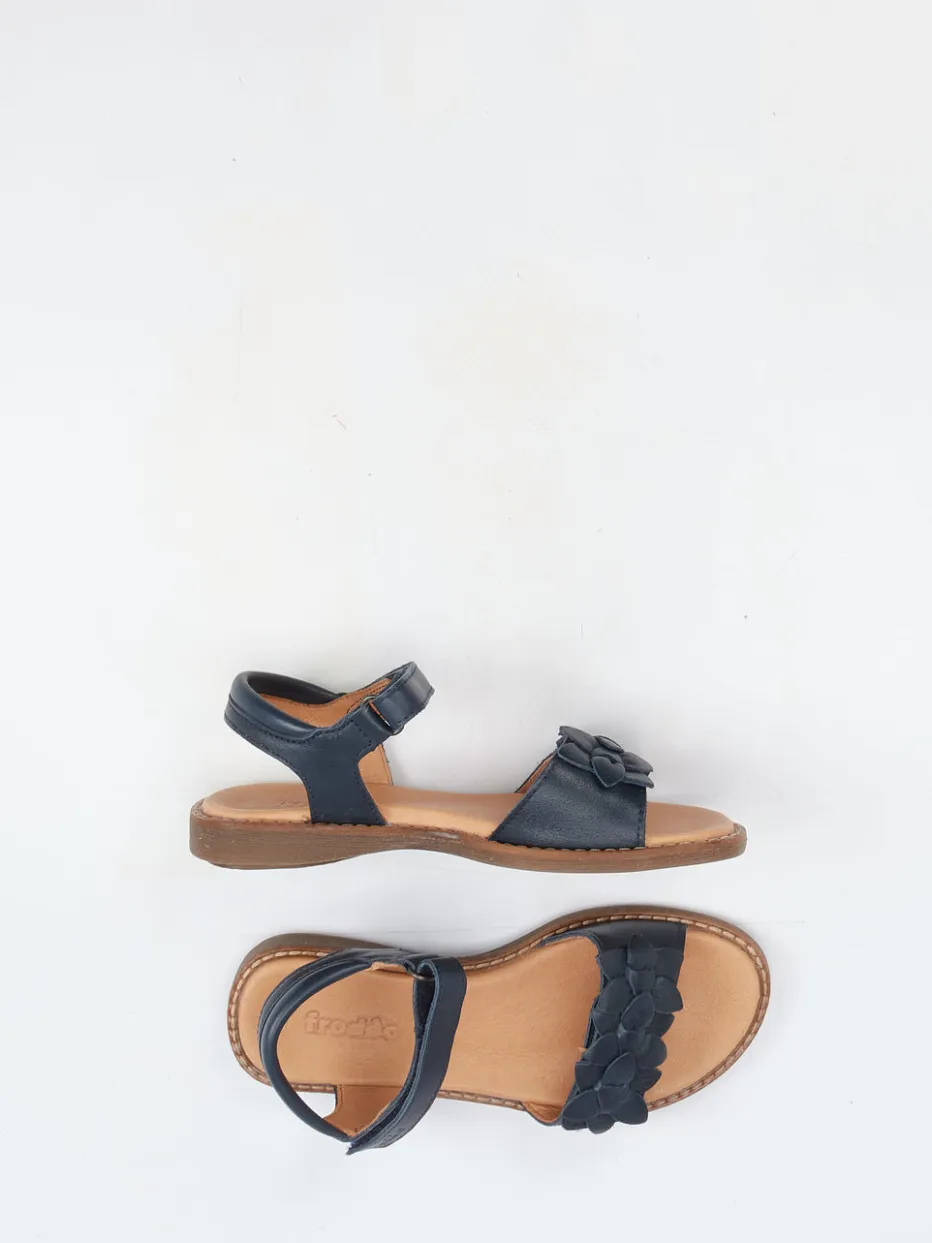 Sommerkomfort mit blumiger Note.Froddo präsentiert diese dunkelblaue Riemchensandale für Mädchen. Ob auf Reisen oder bei sommerlichen Abenteuern im Park: Das glatt verarbeitete Kalbleder mit matter Oberfläche überzeugt durch Strapazierfähigkeit und eine mädchenhaft-verspielte Ästhetik. Ton-in-Ton-Blumenapplikationen am Vorderfuß setzen zarte Akzente, während die individuell anpassbaren Klettverschlüsse optimalen Halt bieten. Eine weich gepolsterte lederne Innensohle ergänzt die flexible, griffig profilierte Gummisohle – perfekt für längere Einsätze an warmen Tagen. Der skandinavisch inspirierte Stil trifft den Trend zu floralen Details in der Kindermode. Leicht kombinierbar zu Kleid und Sommerjacke. Froddo steht für kindgerechten Tragekomfort mit liebevollem Designanspruch.