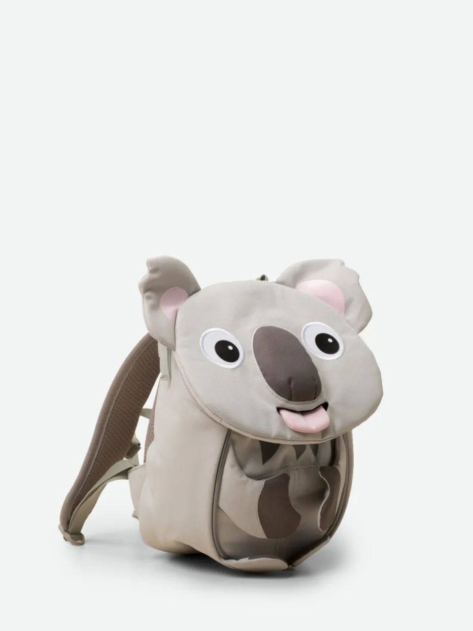 Die schmutz- und wasserabweisenden Rucksäcke der Marke Affenzahn sind nicht nur tierisch niedlich, sondern auch nachhaltig! So besteht Karla Koala unter anderem aus drei recycelten PET-Flaschen. Der Innenraum bietet genügend Platz für alles, was die Kids unterwegs brauchen. Besonders raffiniert ist die Ziehzunge mit dem integrierten Namensschild. Für ein angenehmes Tragegefühl ist dank der weichen Schulterpolster in Kombination mit dem höhen- und weitenverstellbaren Brustgurt gesorgt. – Obermaterial: Textil – Futter: Textil – Farbe: hellgrau – Größe: ca. 25 x 17 x 11 cm (H x B x T) – Schulterriemen: ca. 25 bis 50 cm, verstellbar – Verschluss: Reißverschluss – Innen: ein Steckfach