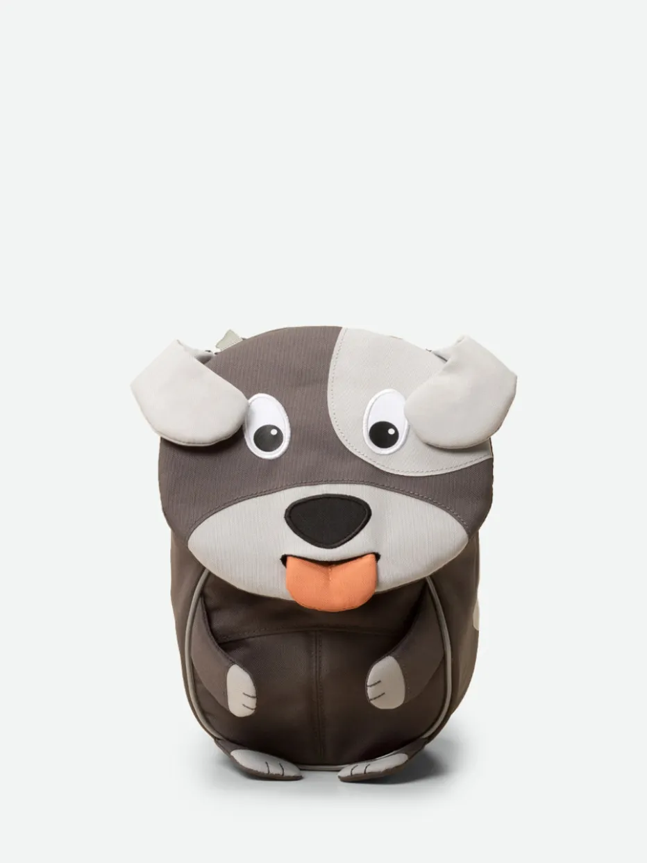 Die schmutz- und wasserabweisenden Rucksäcke der Marke Affenzahn sind nicht nur tierisch niedlich, sondern auch nachhaltig! So besteht Hugo Hund unter anderem aus drei recycelten PET-Flaschen. Der Innenraum bietet genügend Platz für alles, was die Kids unterwegs brauchen. Besonders raffiniert ist die Ziehzunge mit dem integrierten Namensschild. Für ein angenehmes Tragegefühl ist dank der weichen Schulterpolster in Kombination mit dem höhen- und weitenverstellbaren Brustgurt gesorgt. – Obermaterial: Textil – Futter: Textil – Farbe: grau – Größe: ca. 25 x 17 x 11 cm (H x B x T) – Schulterriemen: ca. 25 bis 50 cm, verstellbar – Verschluss: Reißverschluss – Innen: ein Steckfach