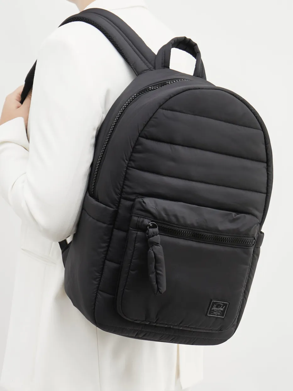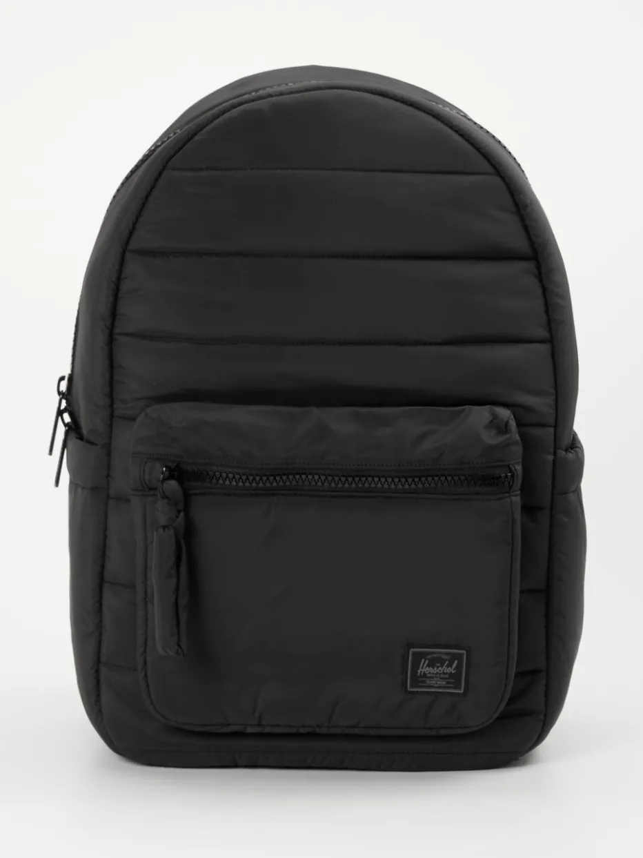 Die Rucksäcke der Marke Herschel stehen für Nachhaltigkeit und einzigartiges Design. Dieses Modell präsentiert sich in einem trendigen Steppmuster und ist aus recycelten Stoffen gefertigt. Die tonigen Reißverschlüsse setzen ausdrucksstarke Akzente. Der Innenbereich garantiert viel Platz für all Ihre Alltagsgegenstände. Die Vordertasche bietet sich zur Aufbewahrung der nötigsten Utensilien an. Die gepolsterten EVA-Schulterriemen garantieren einen bequemen Tragekomfort. Cleanes, urbanes Design, das überzeugt! – Material: 100% PET – Farbe: schwarz – Größe: ca. 45 x 40 x 15 cm (H x B x T) – Schulterriemen: Länge ca. 70 cm, verstellbar – Verschluss: Reißverschluss – Innen: zwei Steckfächer – Außen: ein Reißverschlussfach, zwei Steckfächer