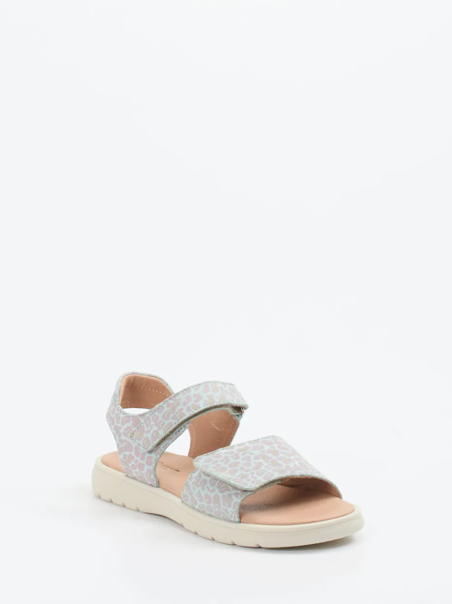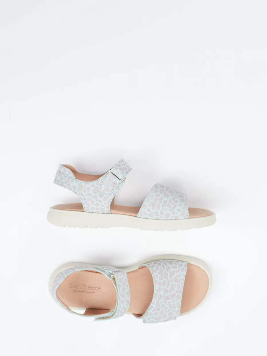 Hingucker in zartem Animal-Look.Ralph Harrison Classic präsentiert mit dieser Klettsandale eine sommerlich-leichte Variante für Mädchenfüße. Beim Spielen im Park oder auf Entdeckungstour im Urlaub überzeugt das Modell mit geprägtem Leder in Hellblaugrau, kombiniert mit rosa und beigen Akzenten. Der pastellige Animal-Print und die matte Oberfläche sorgen für ein modernes Design, während gepolsterte Decksohle und rutschhemmende Gummisohle sicheren Halt und Tragekomfort bieten. Der ergonomische Schnitt sowie der stufenlos justierbare Klettverschluss machen sie besonders alltagstauglich – modischer Softness-Trend inklusive. Stylisch zu Pastellkleid oder Jeansjacke. Verlässlich bequem mit modischem Feinsinn – kindgerecht durchdacht.
