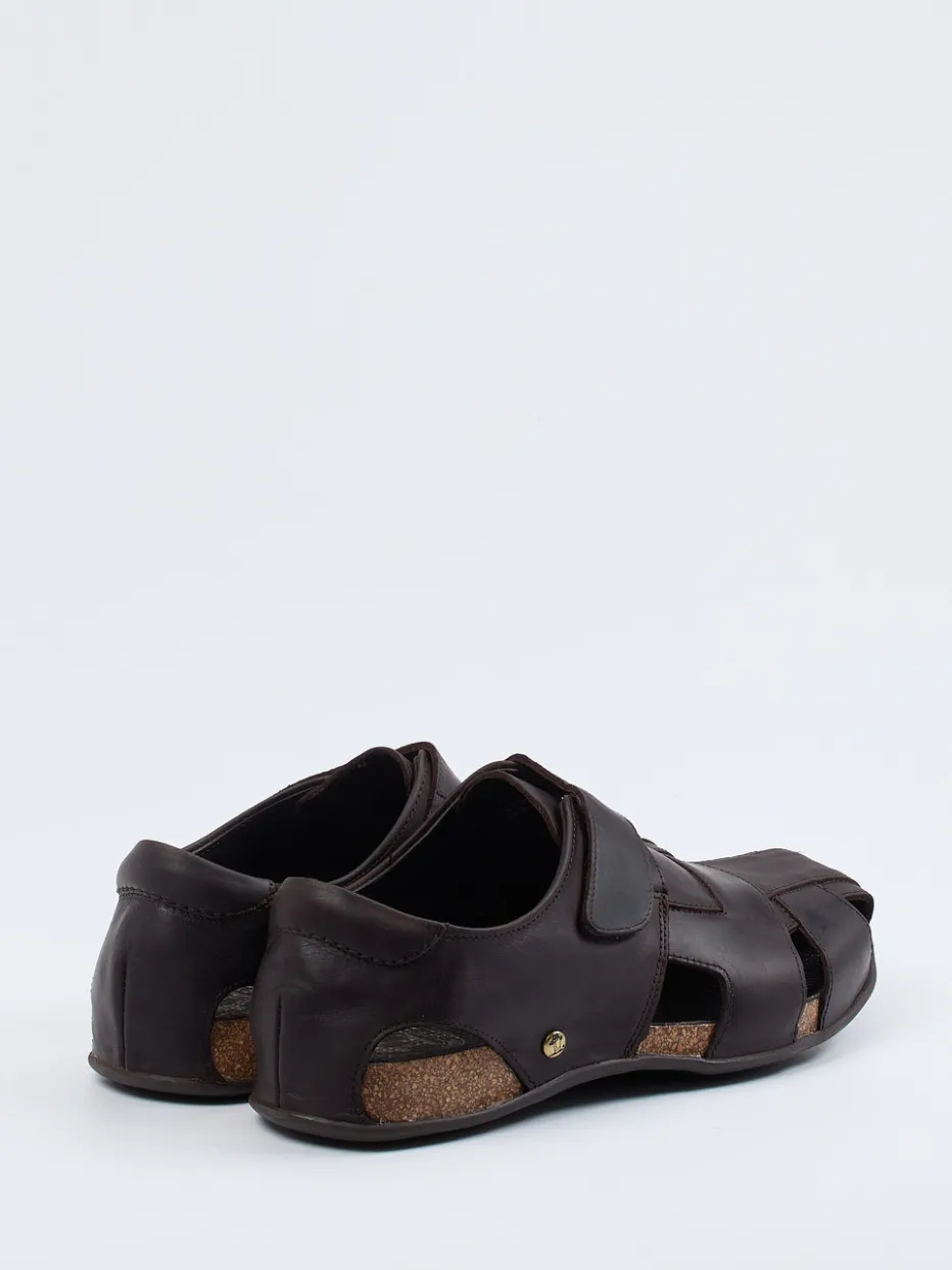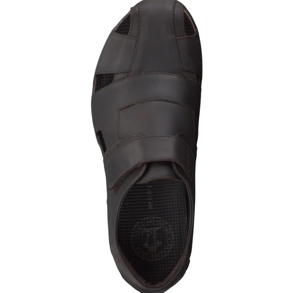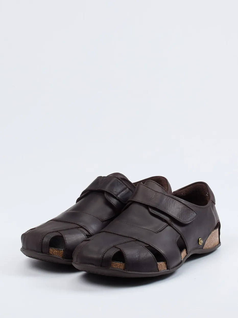 Die Herren-Sandale von Panama Jack verbindet funktionalen Komfort mit reduziertem Designanspruch. Für entspannte Spaziergänge im Urlaub oder den Alltag zuhause bietet das wasserresistente, dunkelbraune Fettleder in matter Ausführung eine hochwertige Grundlage. Dezente Cut-Outs und ein praktischer Klettverschluss sorgen für angenehmes Fußklima und individuelle Passform. Die ergonomisch gepolsterte Kork-Zwischensohle und die strukturierte Gummisohle bieten zuverlässigen Halt auf verschiedenen Untergründen. Abgerundet wird das minimalistische Gesamtbild durch ein dezentes Markenemblem aus Metall. Lässt sich ideal zu Leinenstoffen und Naturtönen kombinieren. Natürlicher Tragekomfort mit Outdoor-Flair – typisch Panama Jack.