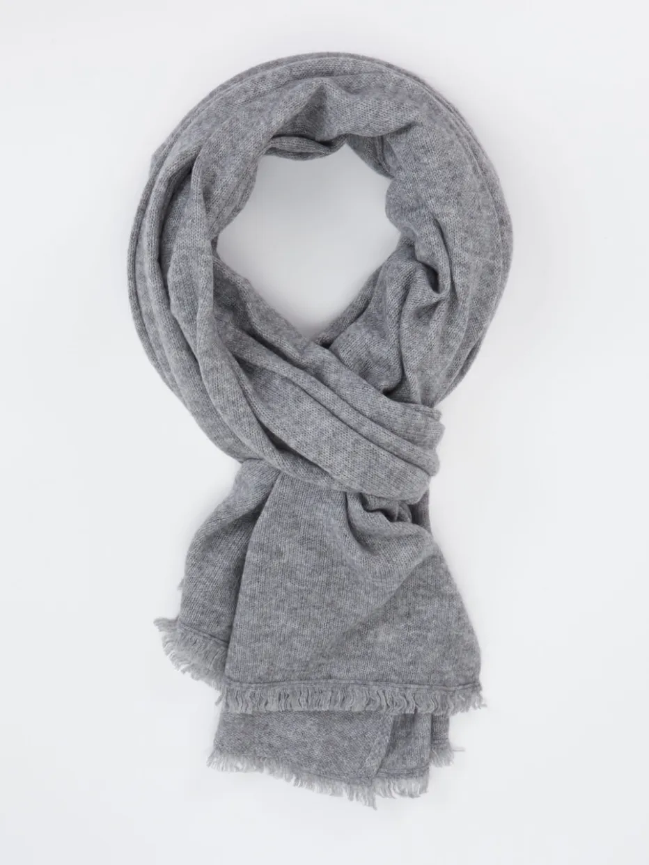 Der Feinstrickschal von FLONA überzeugt mit luxuriösem Kaschmir, meliertem Grau und weicher Haptik – perfekt für stilvolle Winterlooks mit minimalistischem Anspruch.