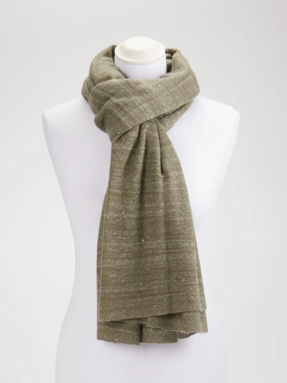 Der weich gestrickte Schal besticht durch seine dezente Eleganz und glitzert zurückhaltend dank feiner eingewebter Pailletten – ideal für moderne Looks zwischen Alltag und Anlass.