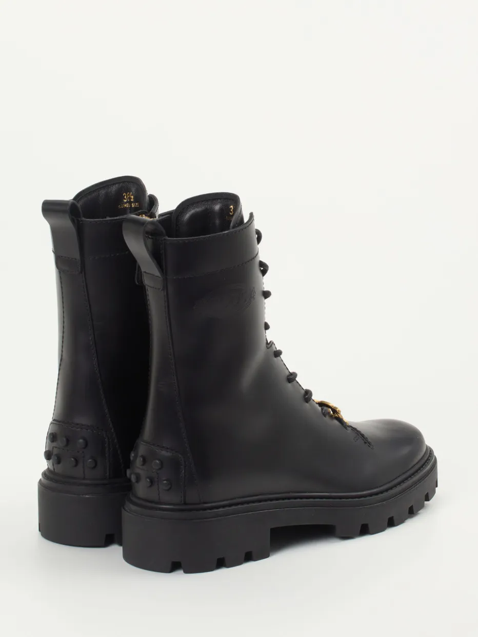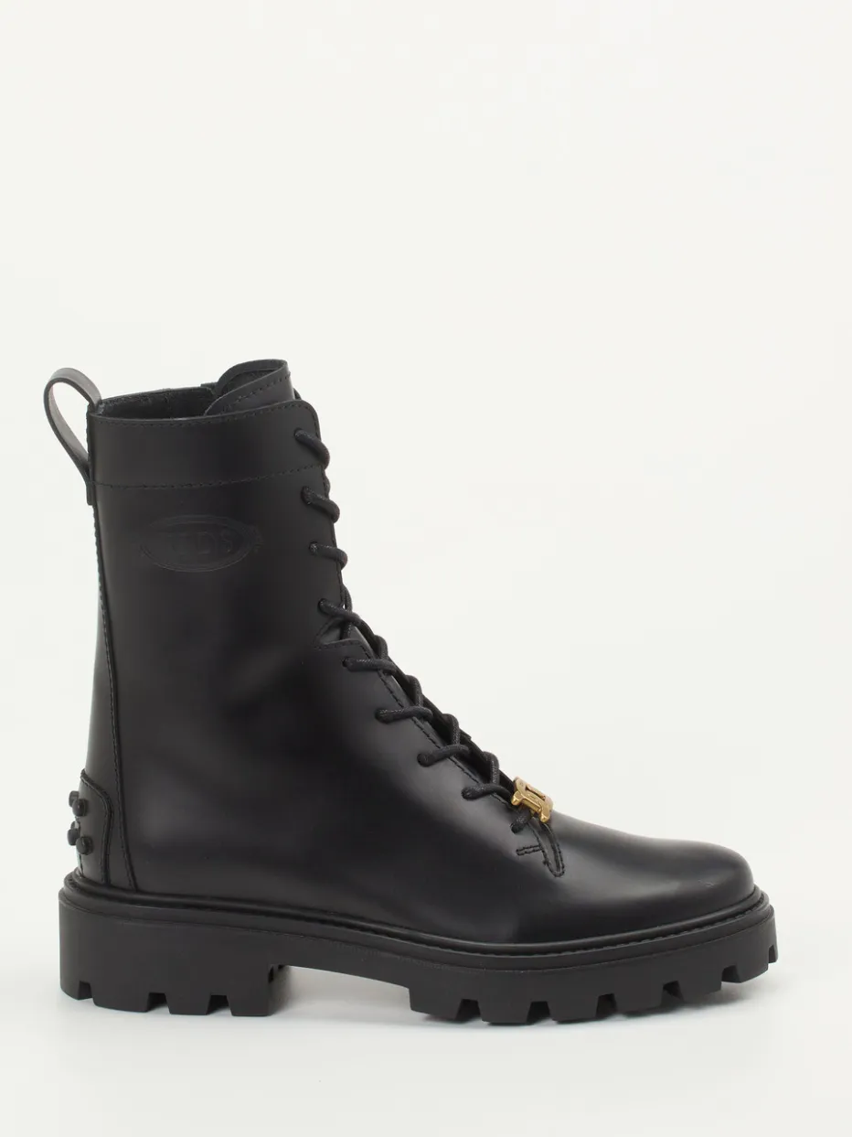 Diese Schnür-Boots von Tod’s vereinen hochwertiges Kalbleder mit goldfarbenem Logo-Akzent – eine stilistische Verbindung aus Eleganz und Streetwear.